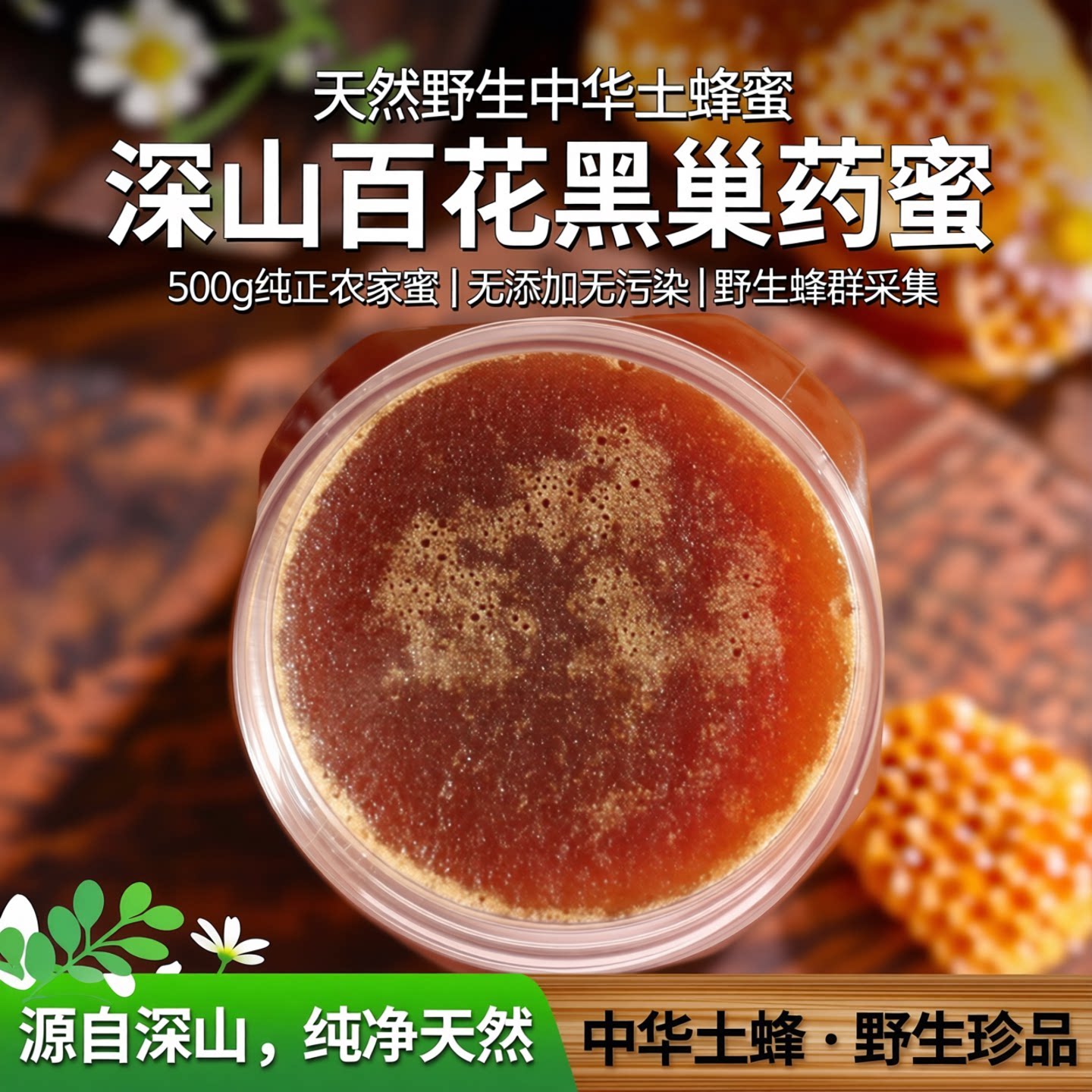 蜂蜜天然纯正蜜蜂糖农家深山百花黑巢药密500g正宗野生中华土峰蜜