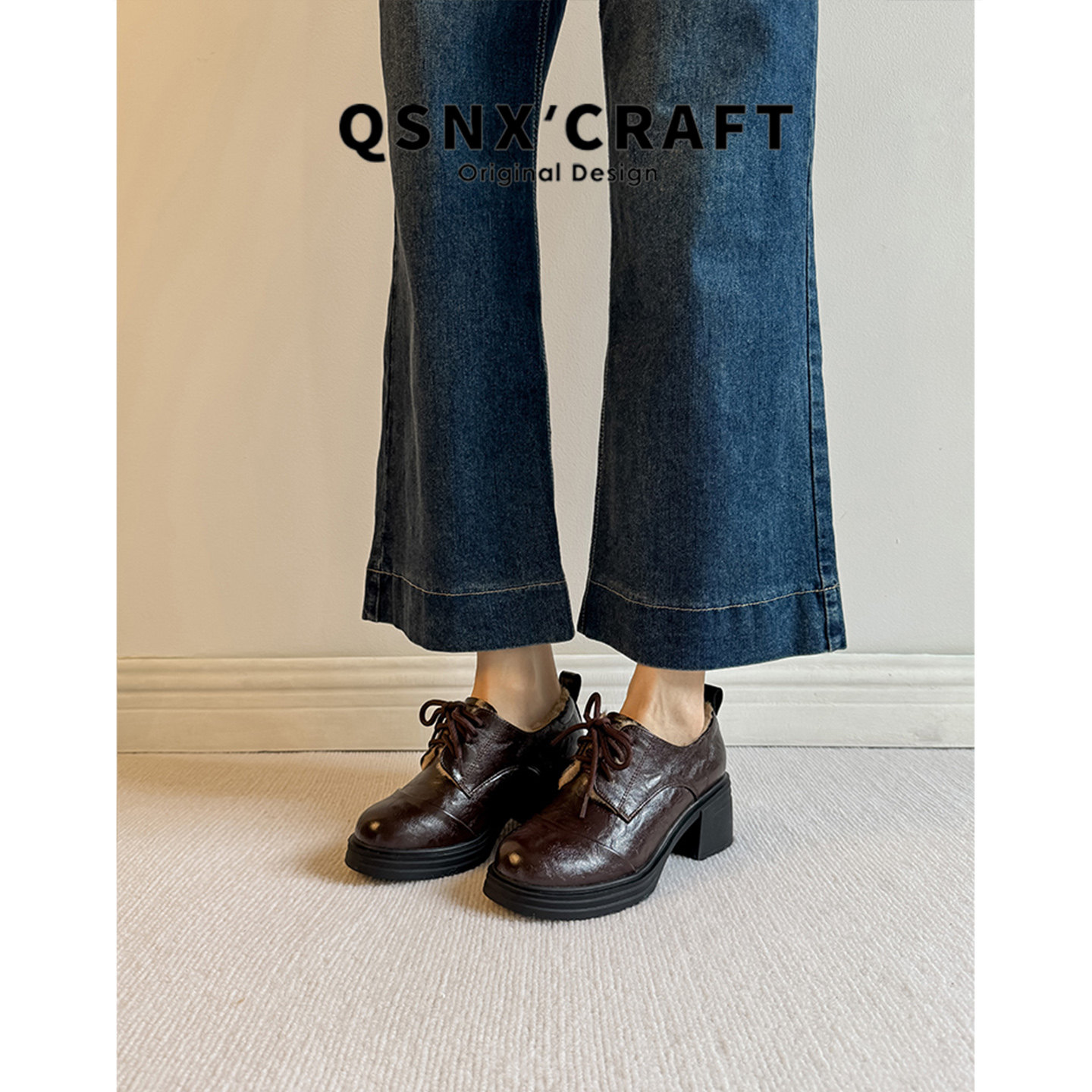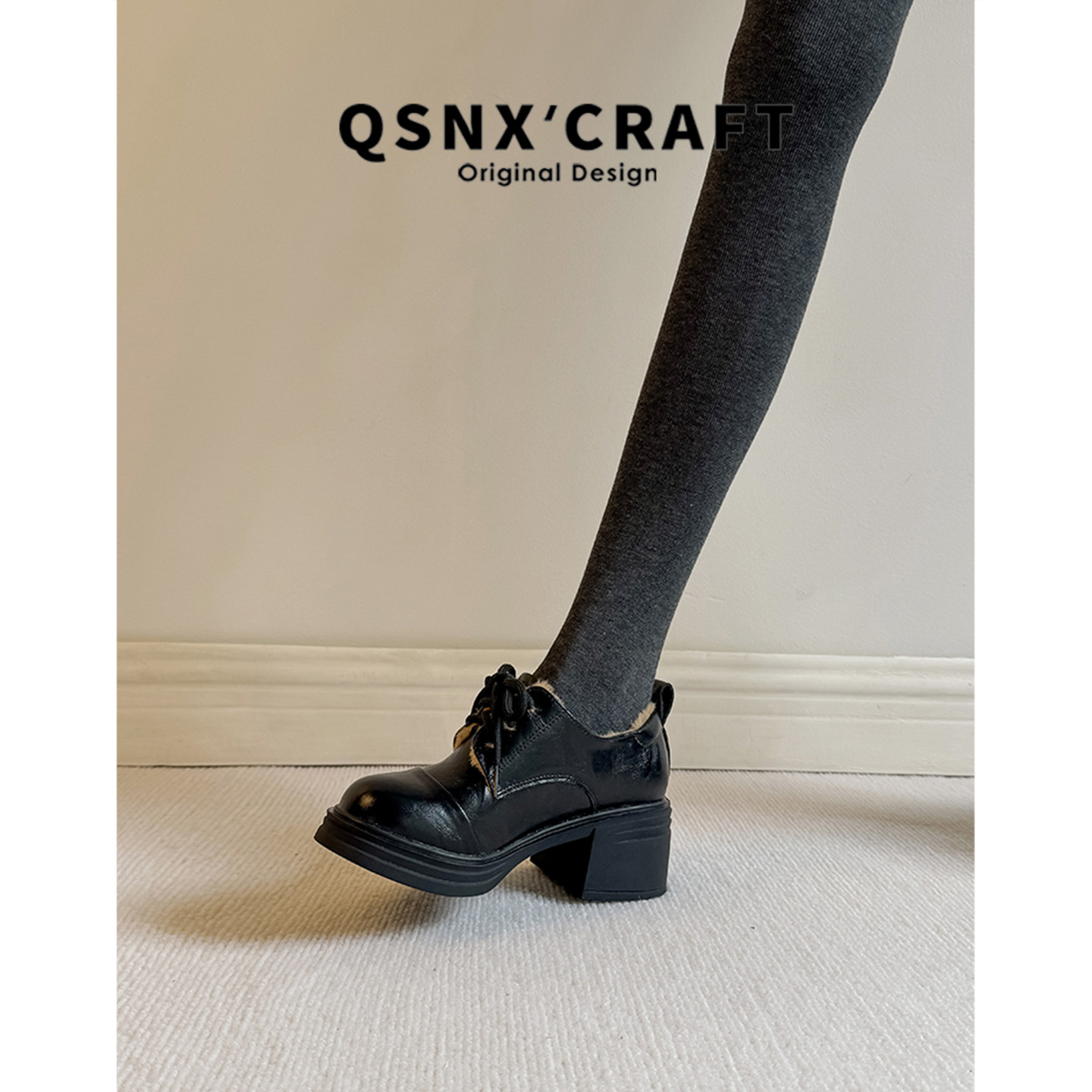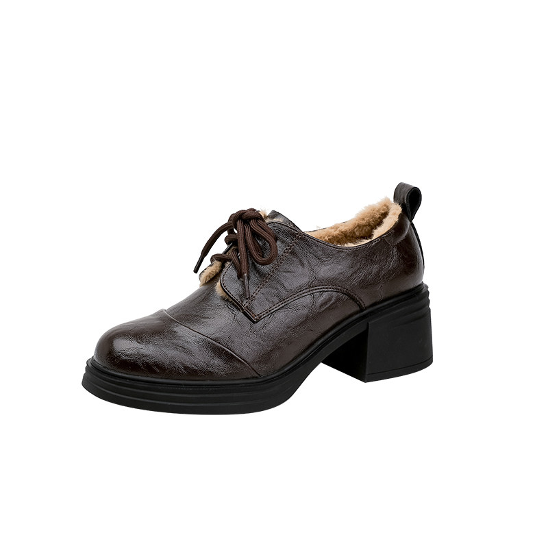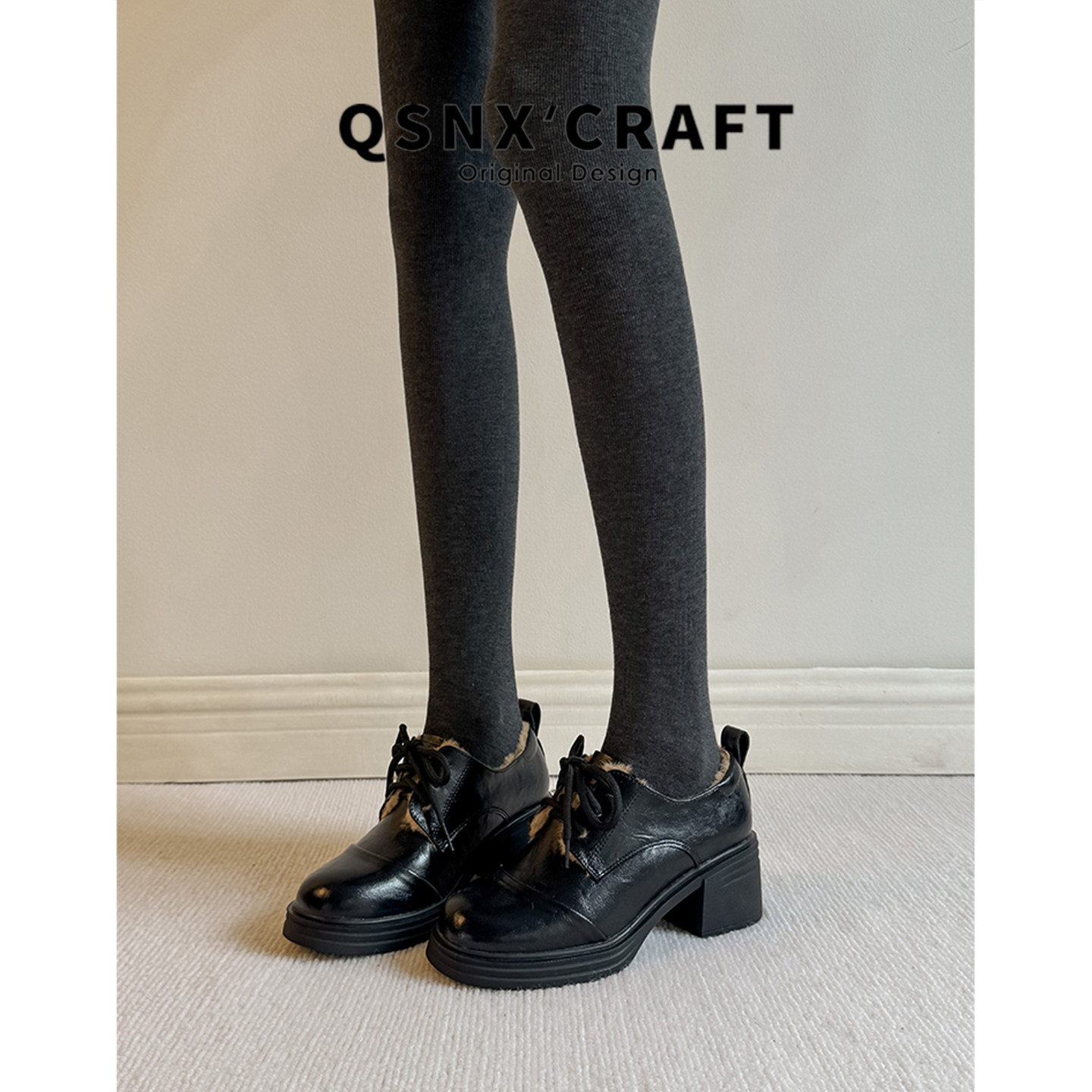 真皮版~加绒高跟小皮鞋女2025秋冬新款英伦风单鞋厚底棕色乐福鞋