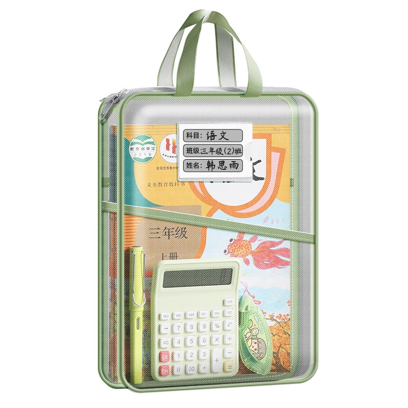 L型科目分类袋手提透明文件袋拉链式小学生拉链网格收纳包大开口拎书袋初中生作业补习袋档案袋试卷收纳袋子
