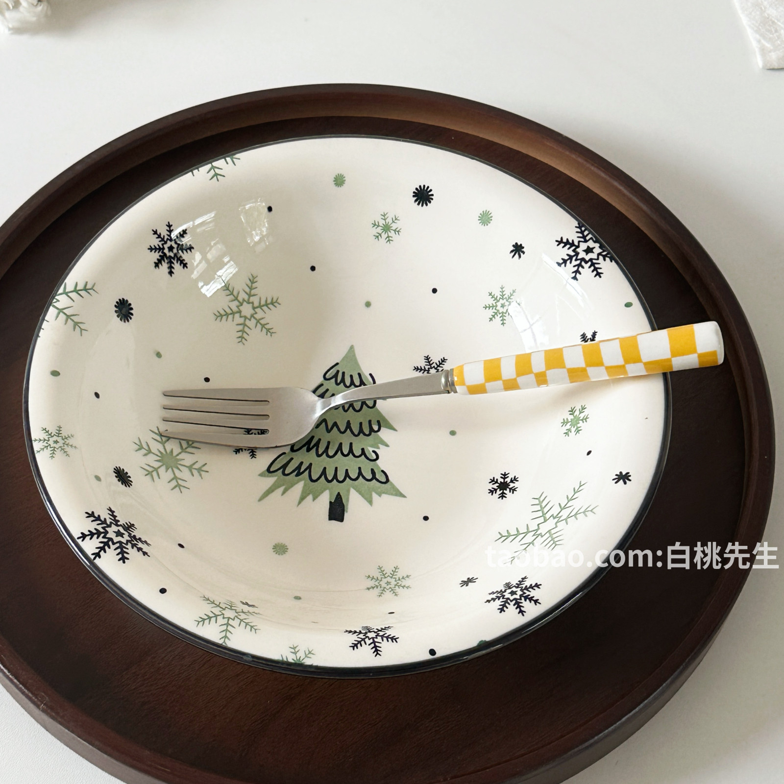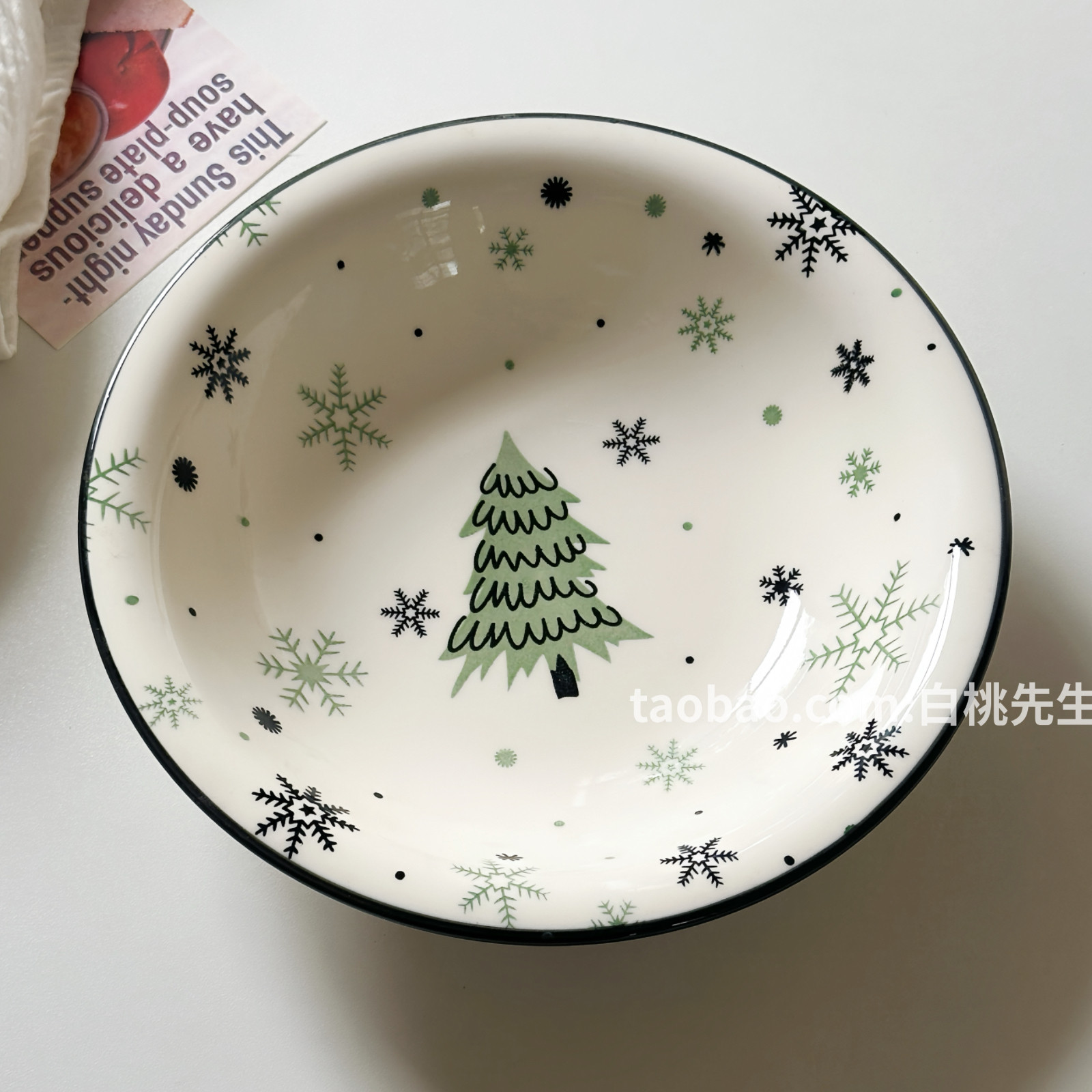 圣诞树泡面碗ins风可爱手绘印花家用陶瓷餐具泡面碗大容量高级感