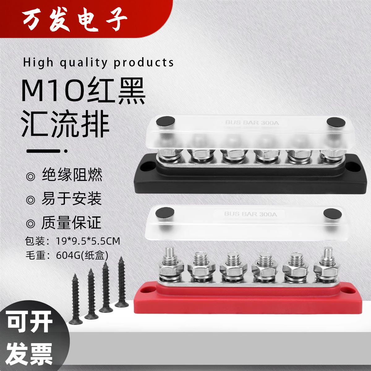新款房车游艇配件汇流排 红黑色单排6路M10螺柱300A大电流汇线排