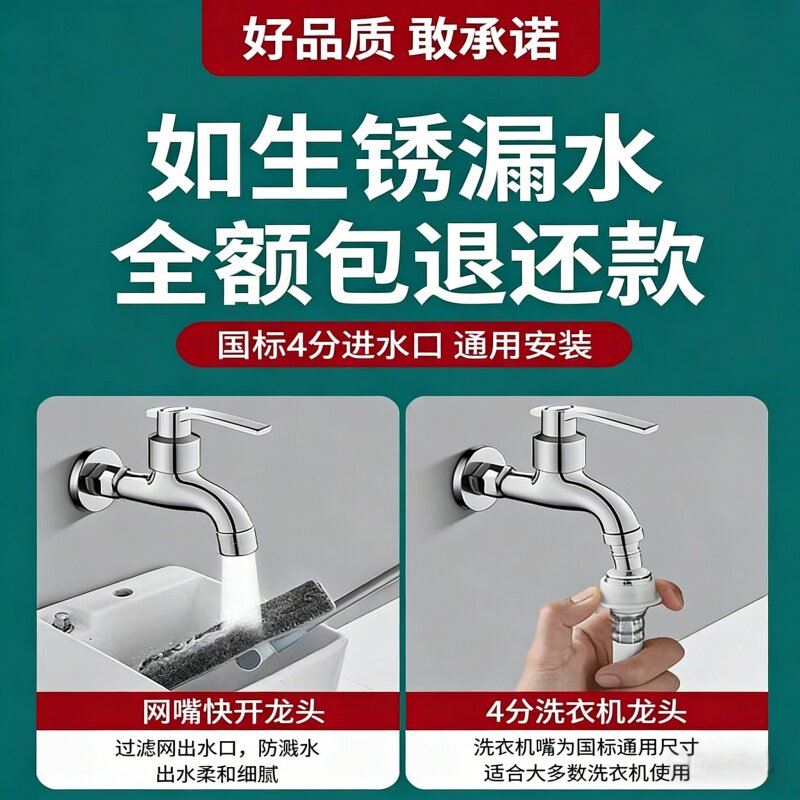 洗衣机水龙头专用拖把池阳台自来水普通四4分入墙式单冷家用龙头