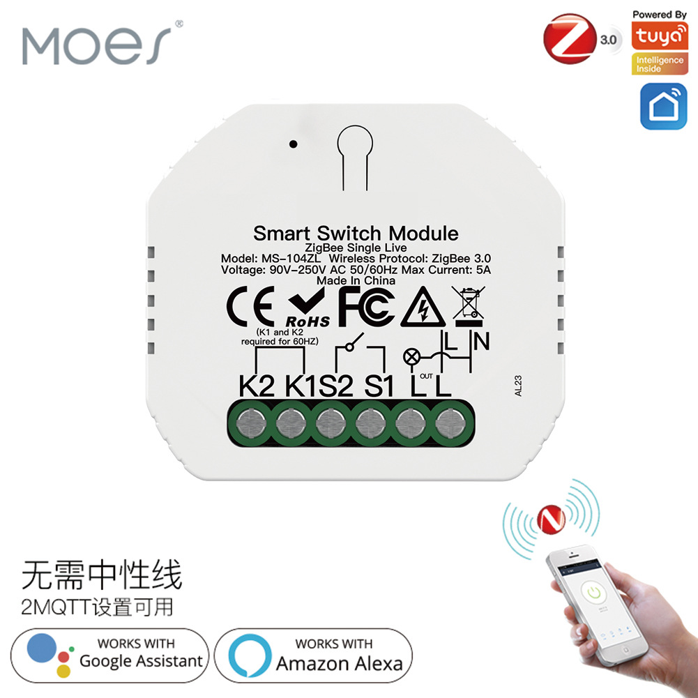 tuya智能家居zigbee开关通断器单火接线app远程控制定时开关模组