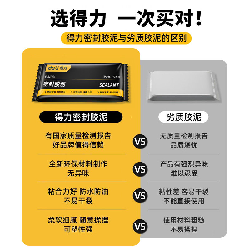 得力密封胶泥下水管道防返臭神器空调孔堵洞防水堵塞泥漏水补漏胶