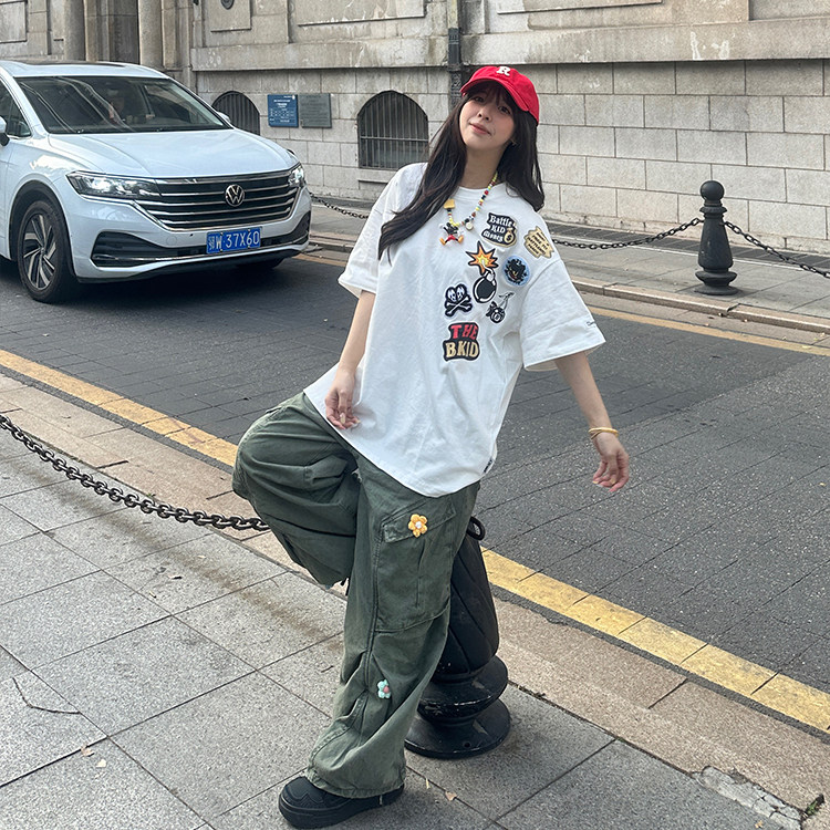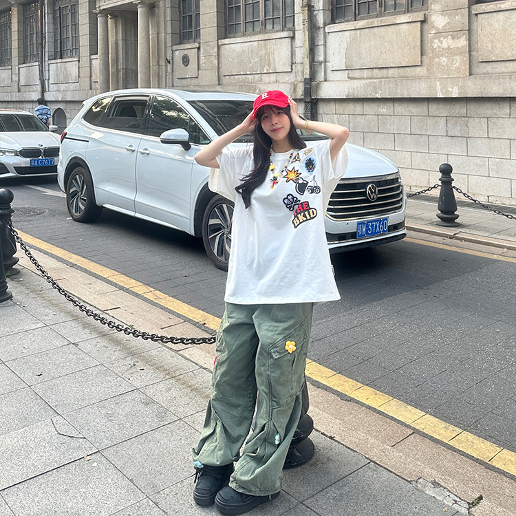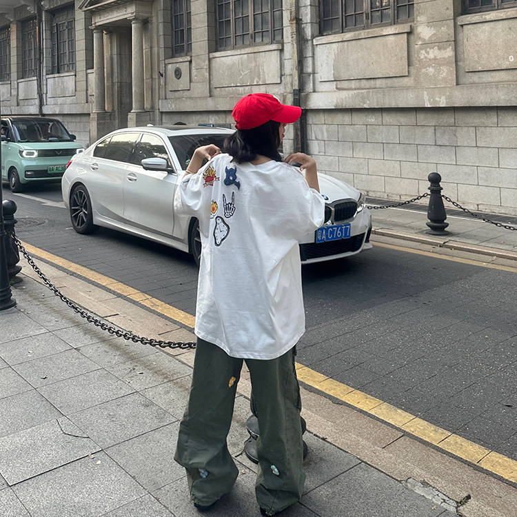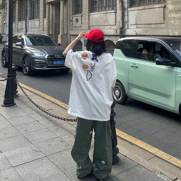 XKSHUO美式复古国潮牌涂鸦卡通短袖T恤男女夏季情侣宽松tee
