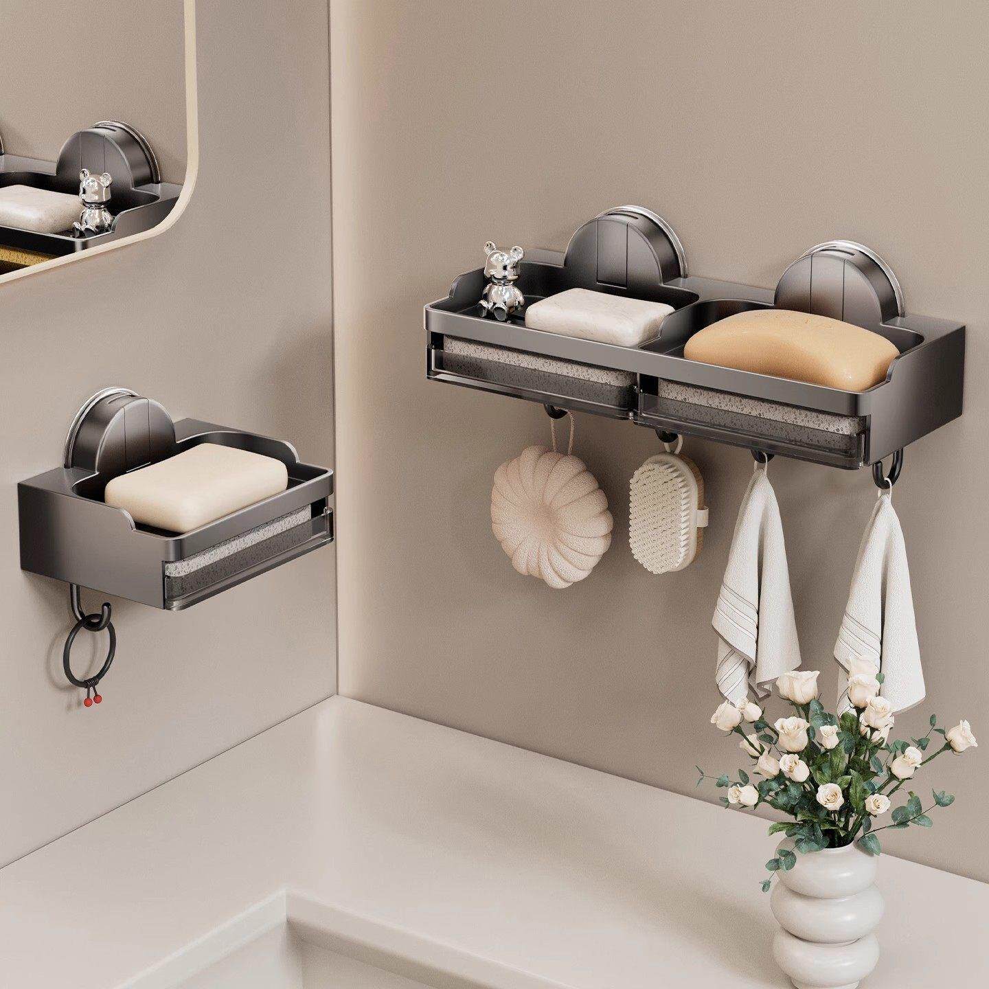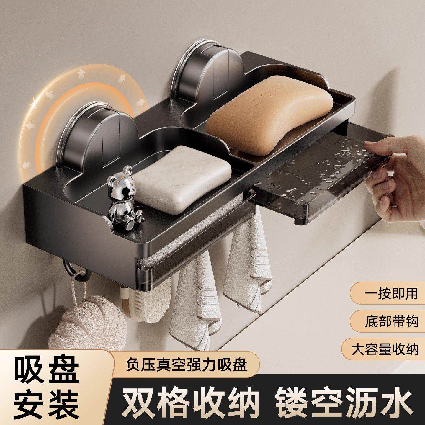 吸盘肥皂盒浴室香皂盒壁挂卫生间置物架家用沥水香皂架其他收纳盒