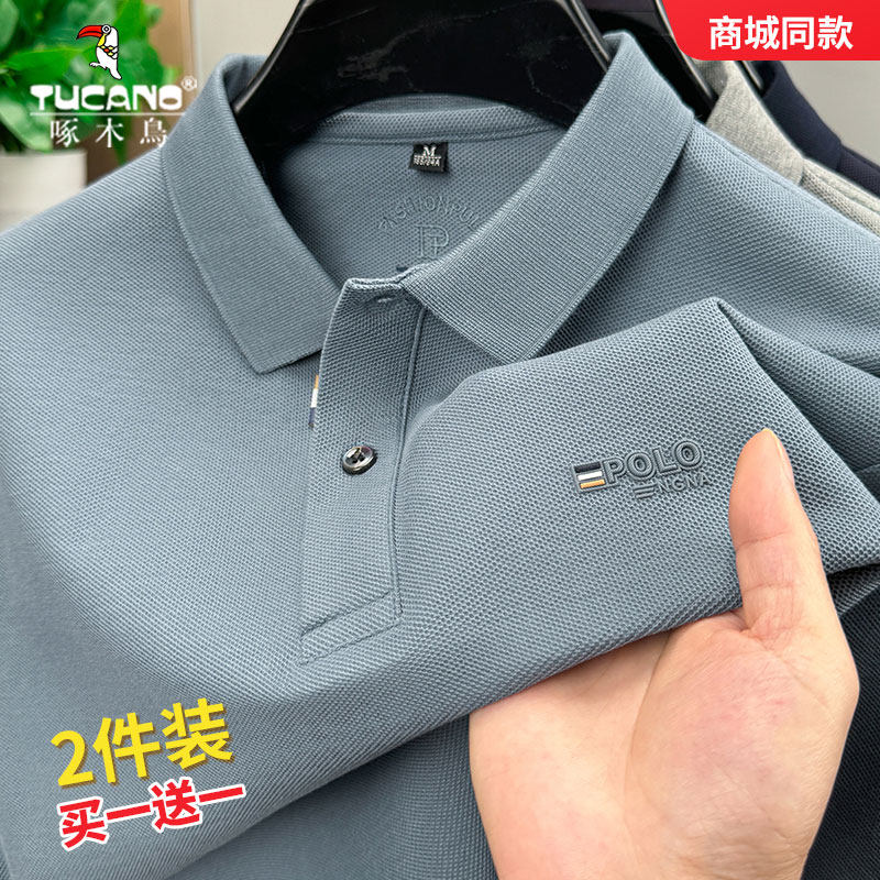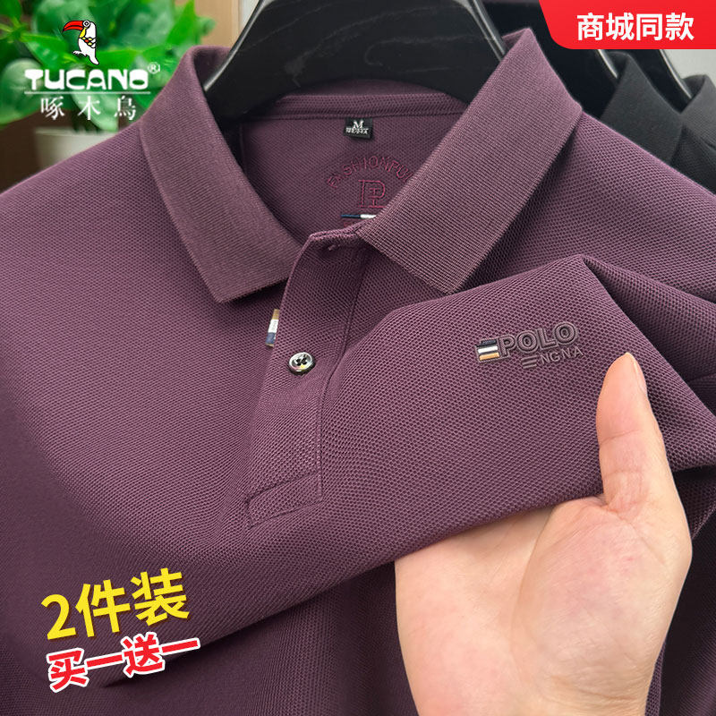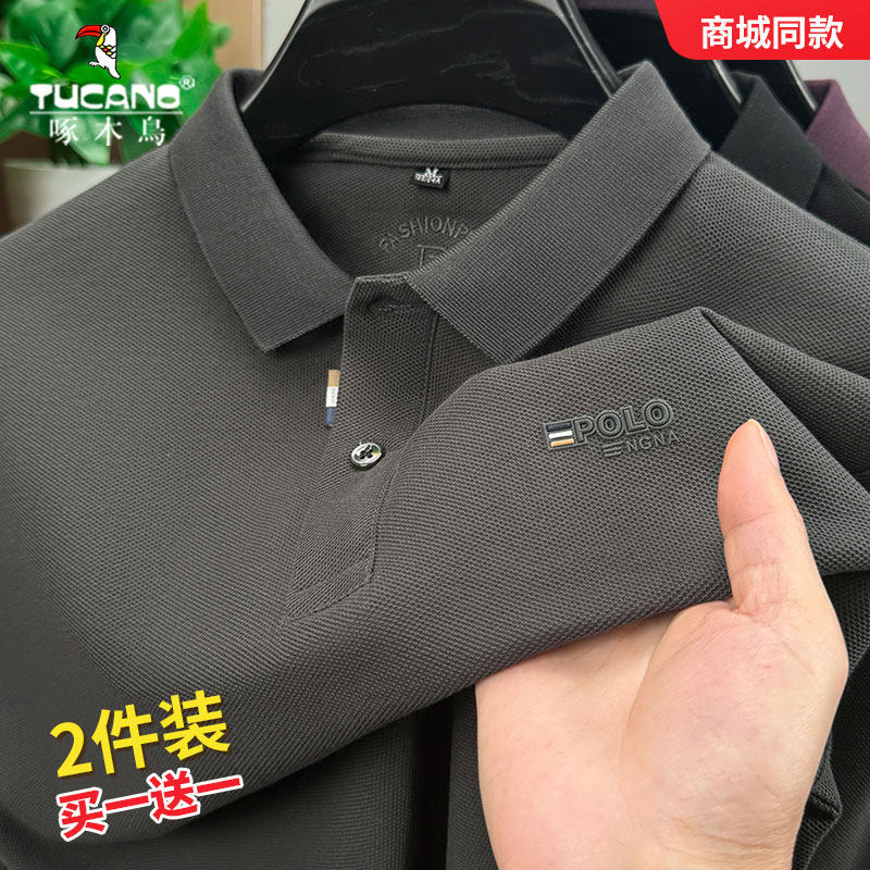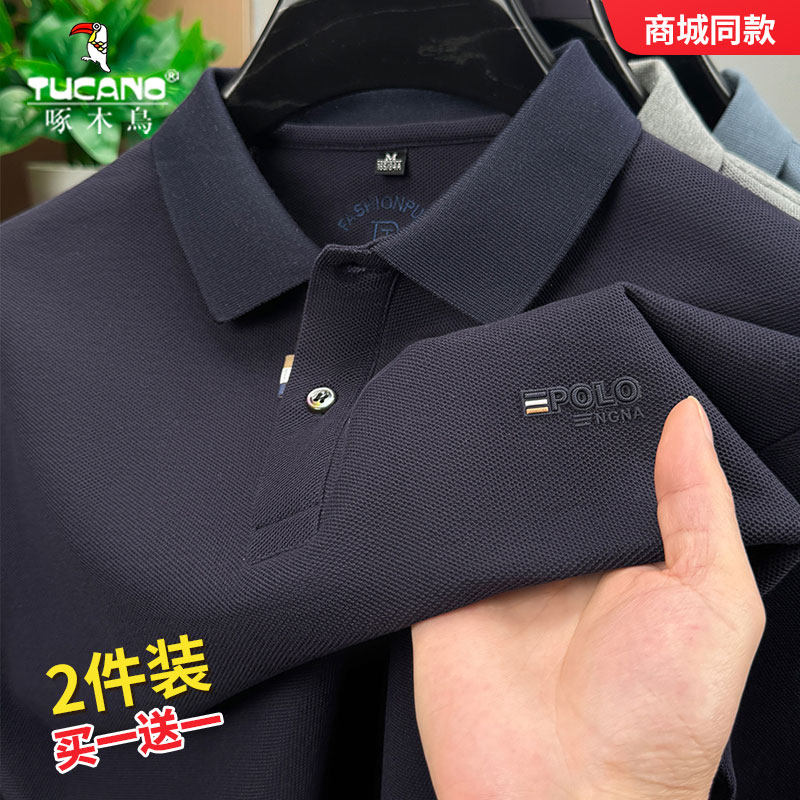 啄木鸟100%纯棉新款Polo衫男士秋冬季长袖T恤中年休闲翻领上衣潮