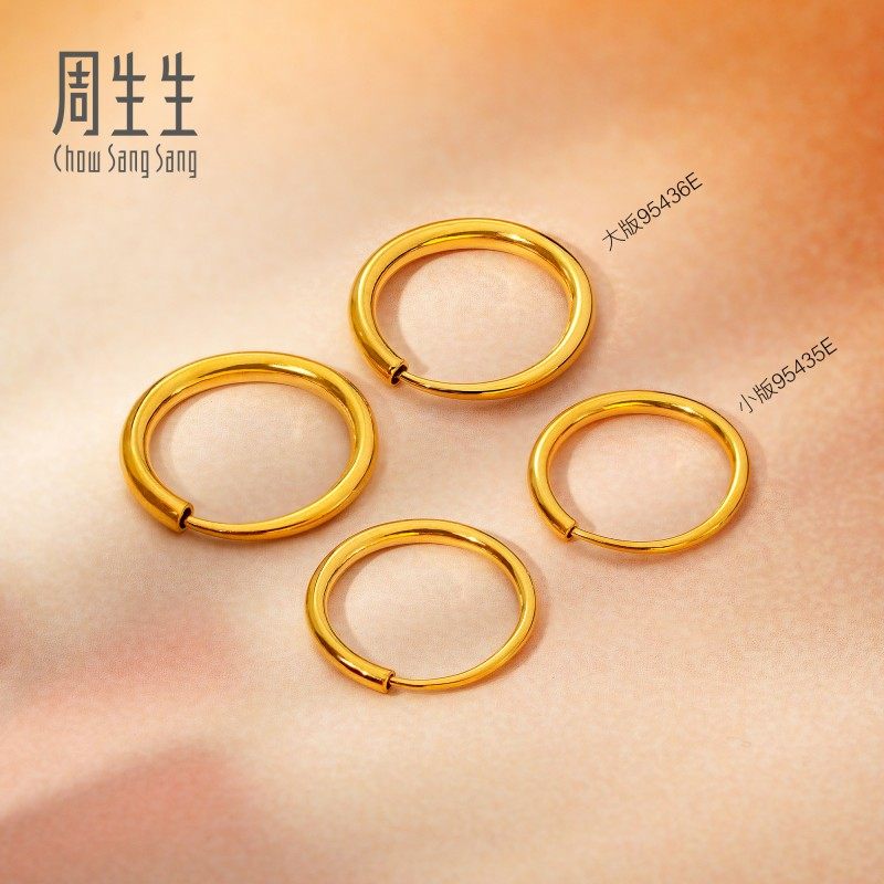 周生生珠宝黄金耳饰足金耳钉素圈耳环圆环女款大版95436E定价