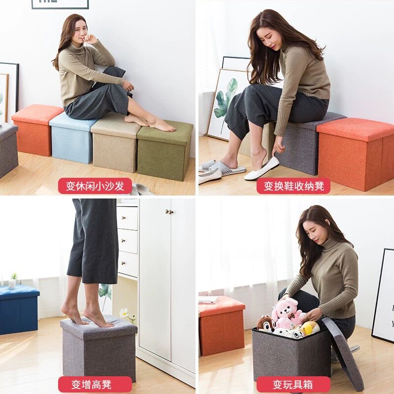 可折叠收纳凳子多功能布艺储物凳可坐成人收纳整理箱玄关换鞋凳