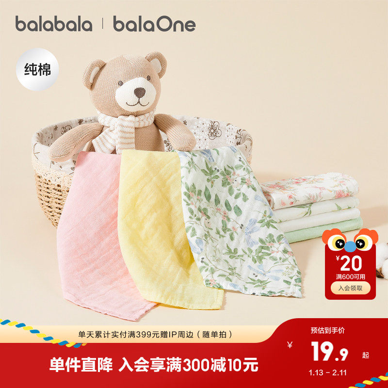 【balaOne】巴拉巴拉婴童用品宝宝纱布巾口水巾亲肤柔软三件装萌