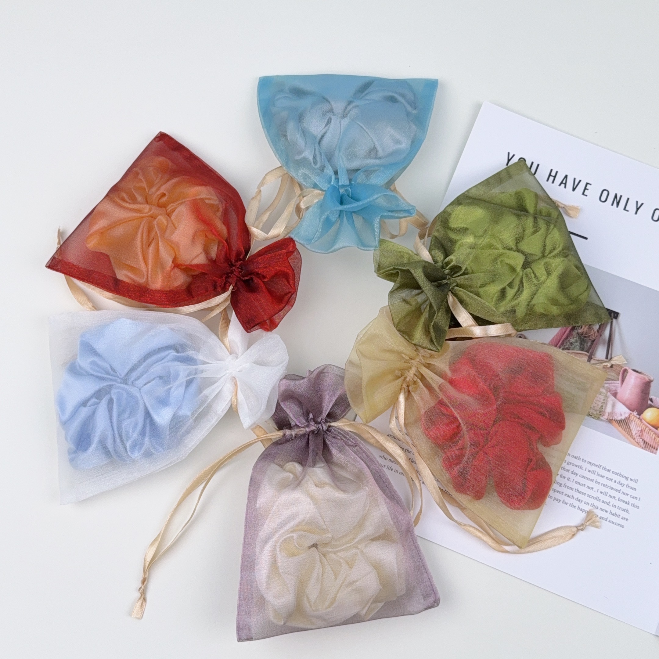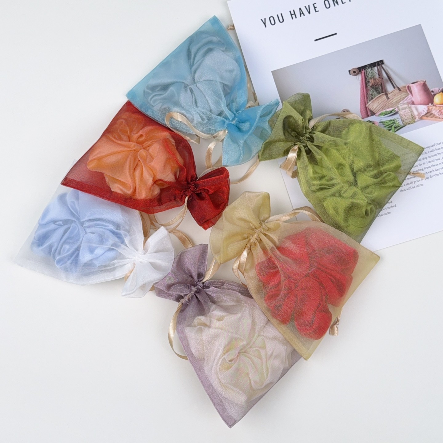 大肠真丝发圈包装收纳袋空 时尚饰品发饰首饰袋纯色欧根纱束口袋