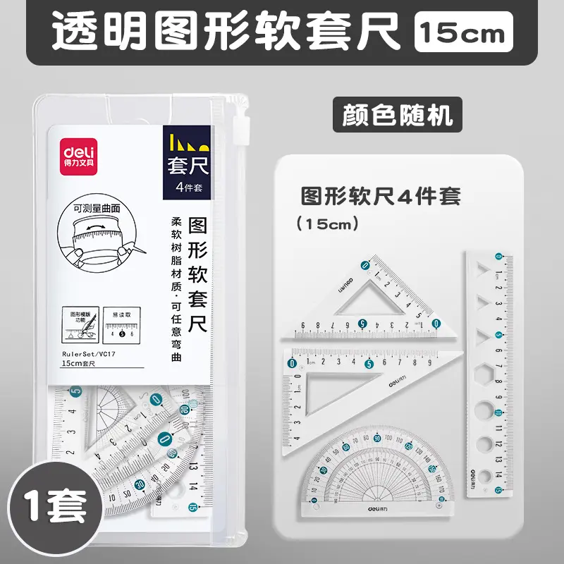 尺子四件套装小学生文具多功能软尺量角器尺子文具各类尺子三角板