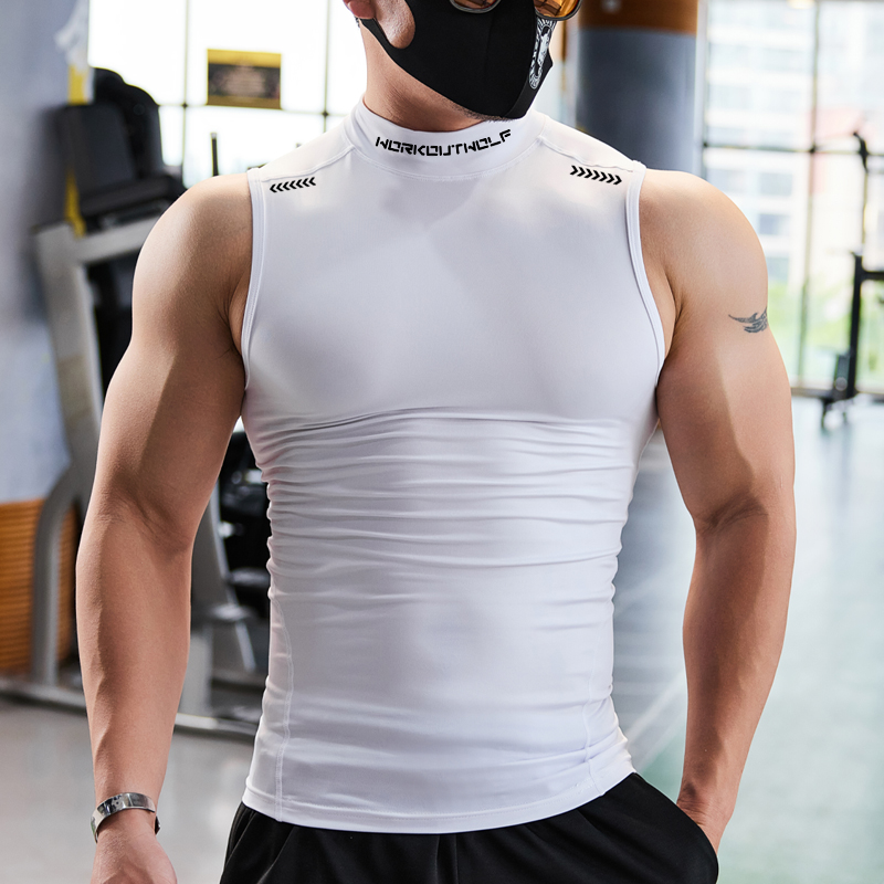 撸铁狼健身运动背心无袖坎肩男款弹力压缩衣速干健身训练紧身衣