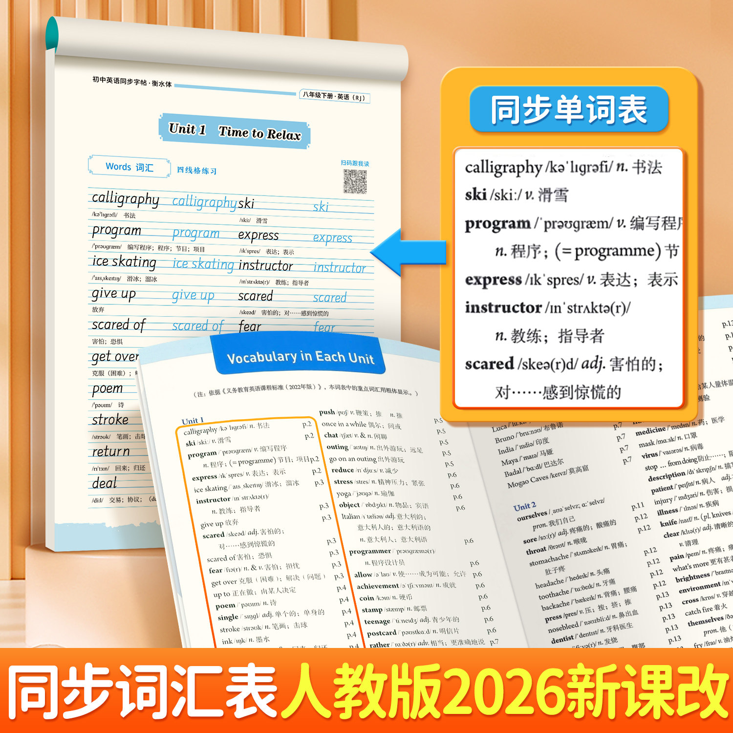 邹慕白2026春新版人教版衡水体七八九年级上册下册英语练字帖课本同步初中生专用字帖手写体初一字母单词衡水体中考英语满分作文
