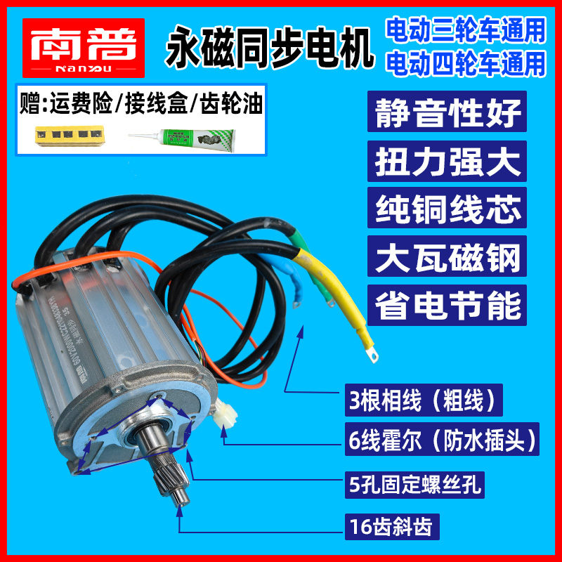 南普电动三轮车电机永磁同步1500W四轮电机48V60V72V无刷直流配件