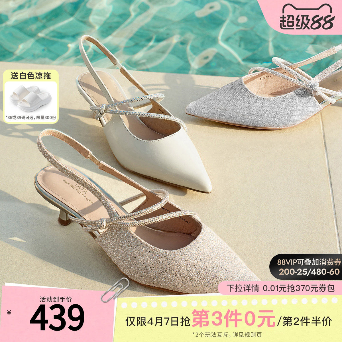 TATA他她女鞋2026夏季新款银色时装凉鞋时尚包头细跟单鞋NGY11BH6