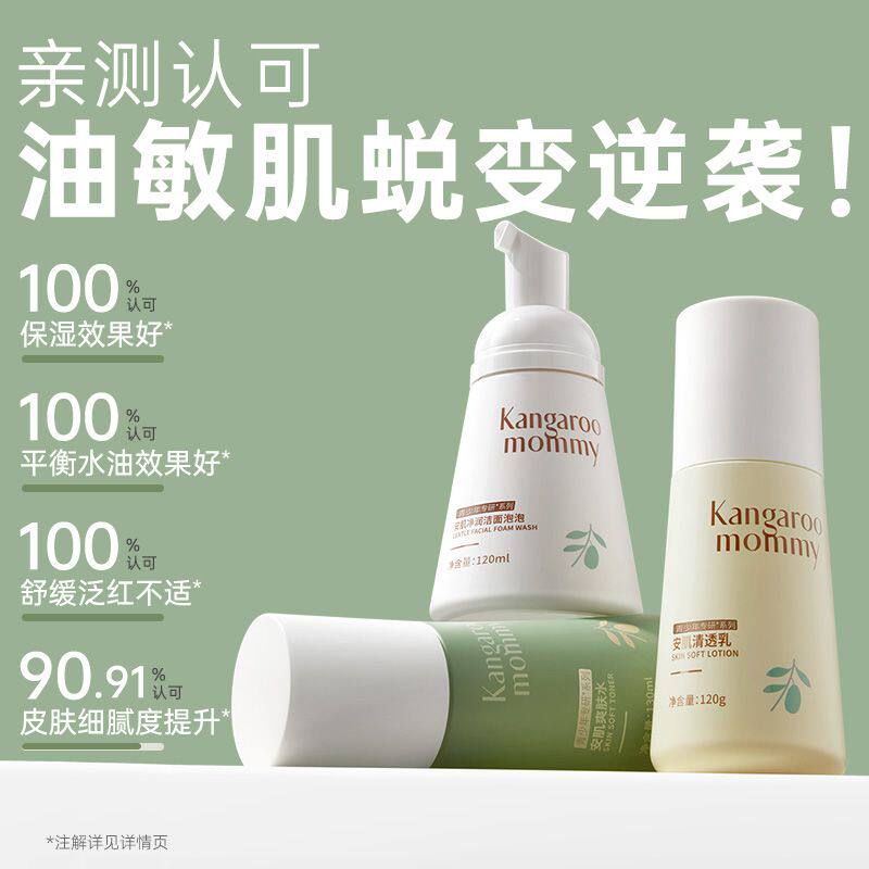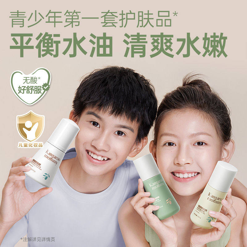 袋鼠妈妈青少年护肤套装儿童洗面奶青春期洗护控油祛痘水乳12岁+