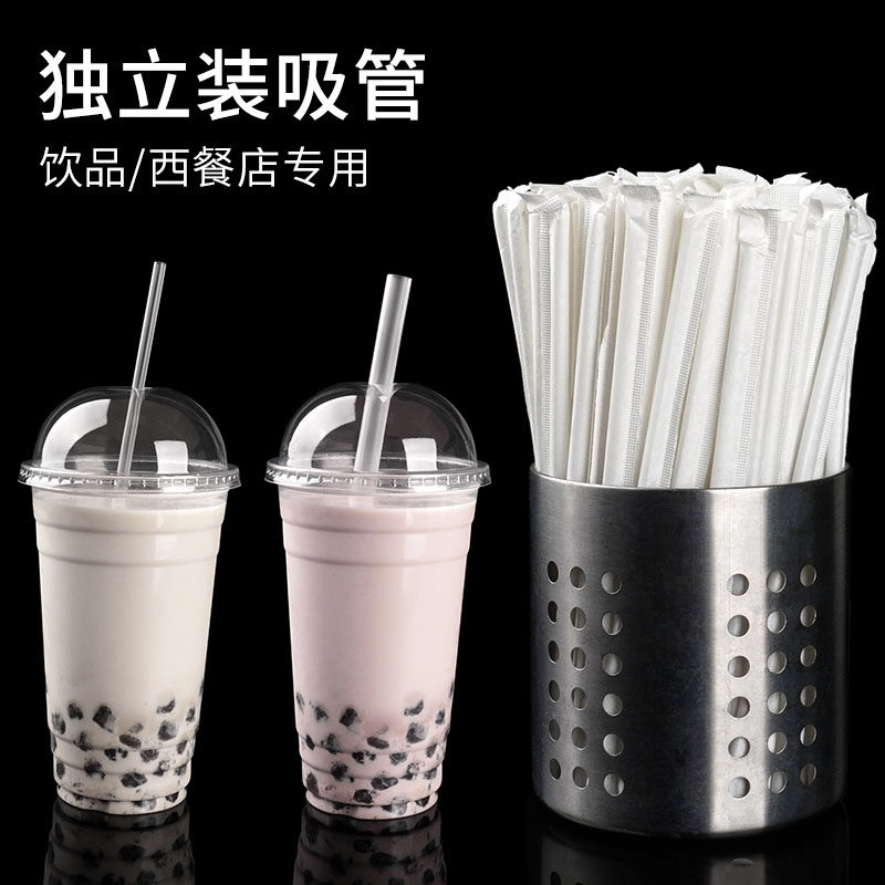 一次性吸管透明纸包单支细吸管19cm21cm23cm粗吸管奶茶果汁直吸管