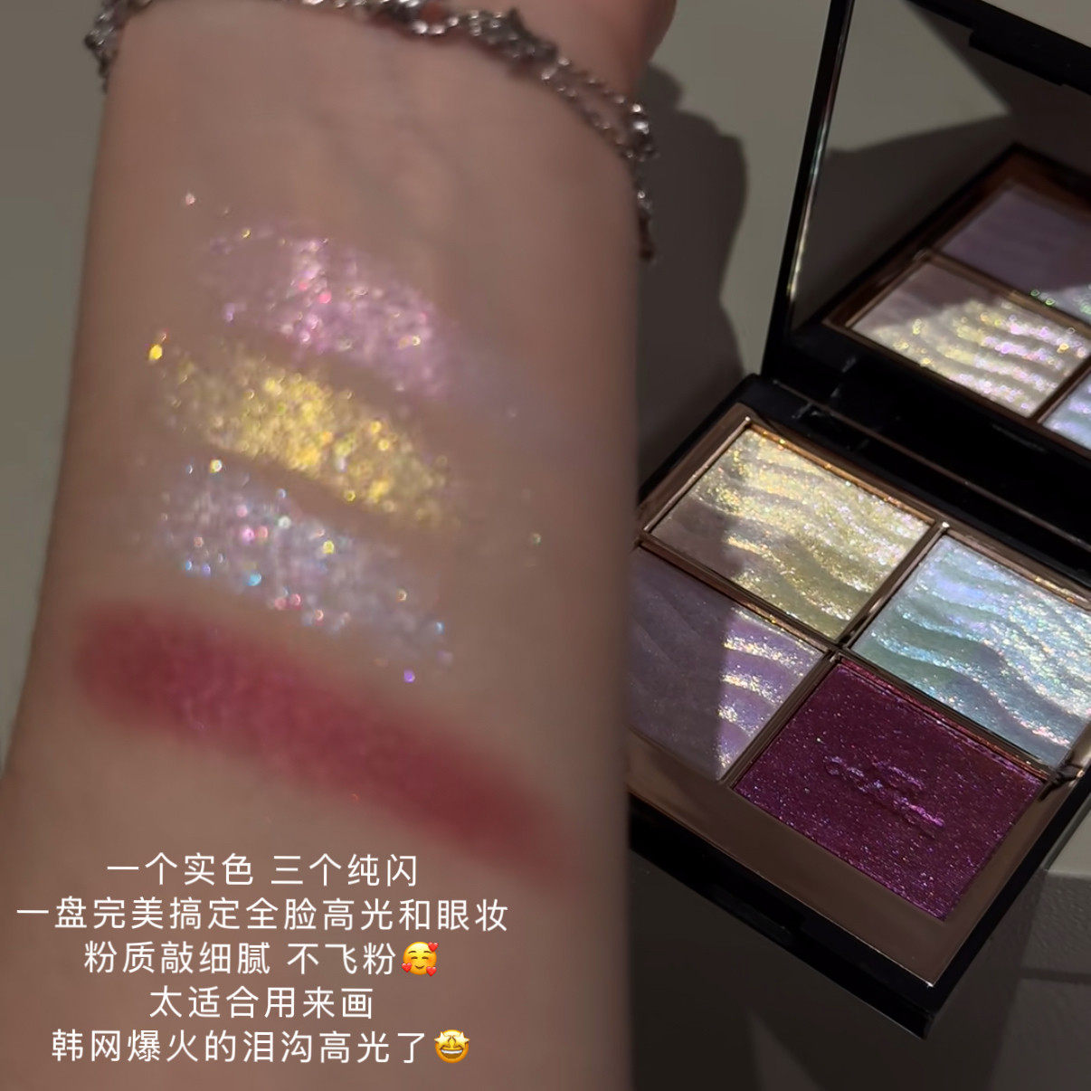 ins感清冷色彩系!拼色梦影眼影盘偏光爆闪碎钻提亮高光细腻学生�