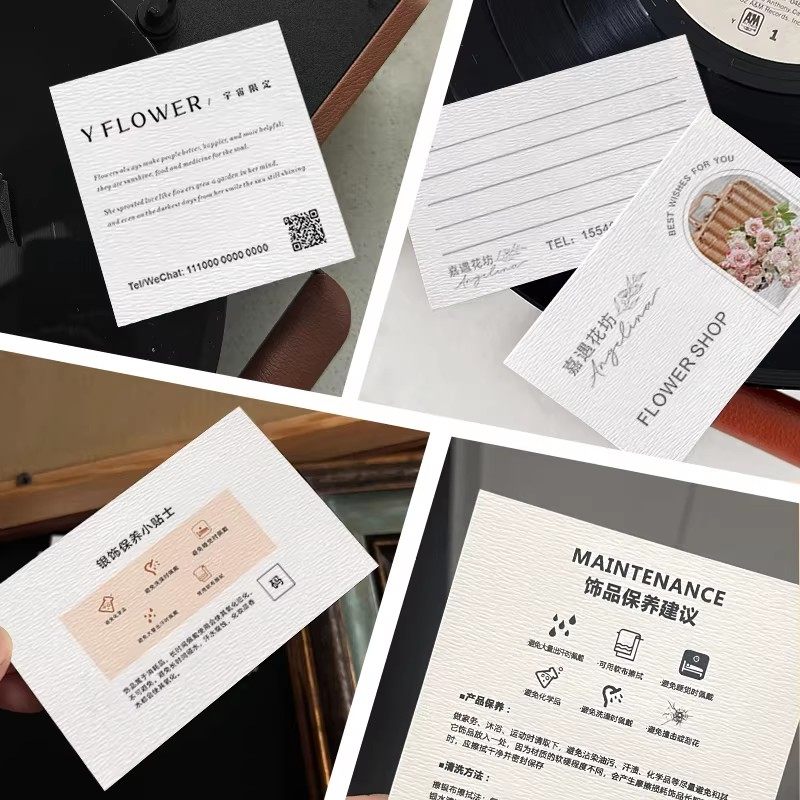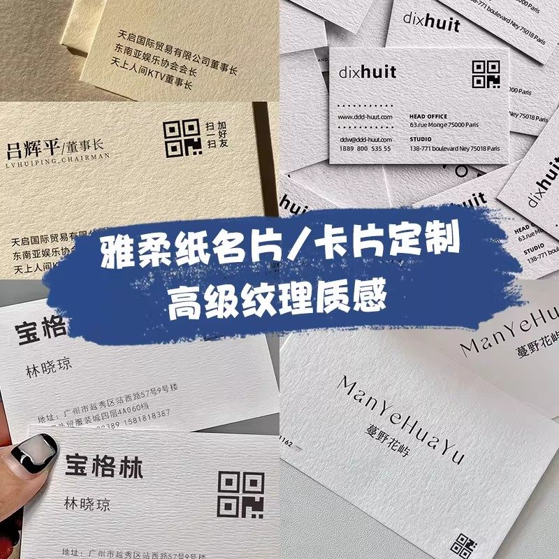 雅柔纸卡片定制特种纸名片订制广告宣传双面二维码硬卡纸设计饰品水晶保养服务售后卡设计高端商务纹理明信片