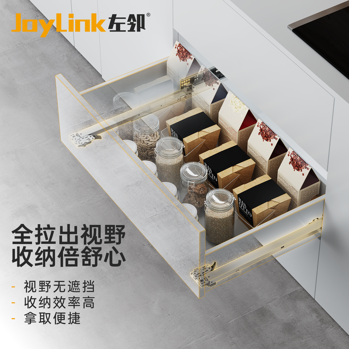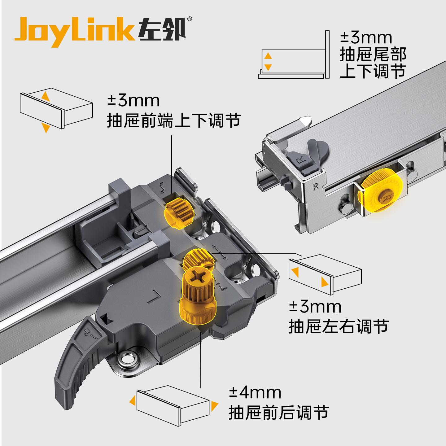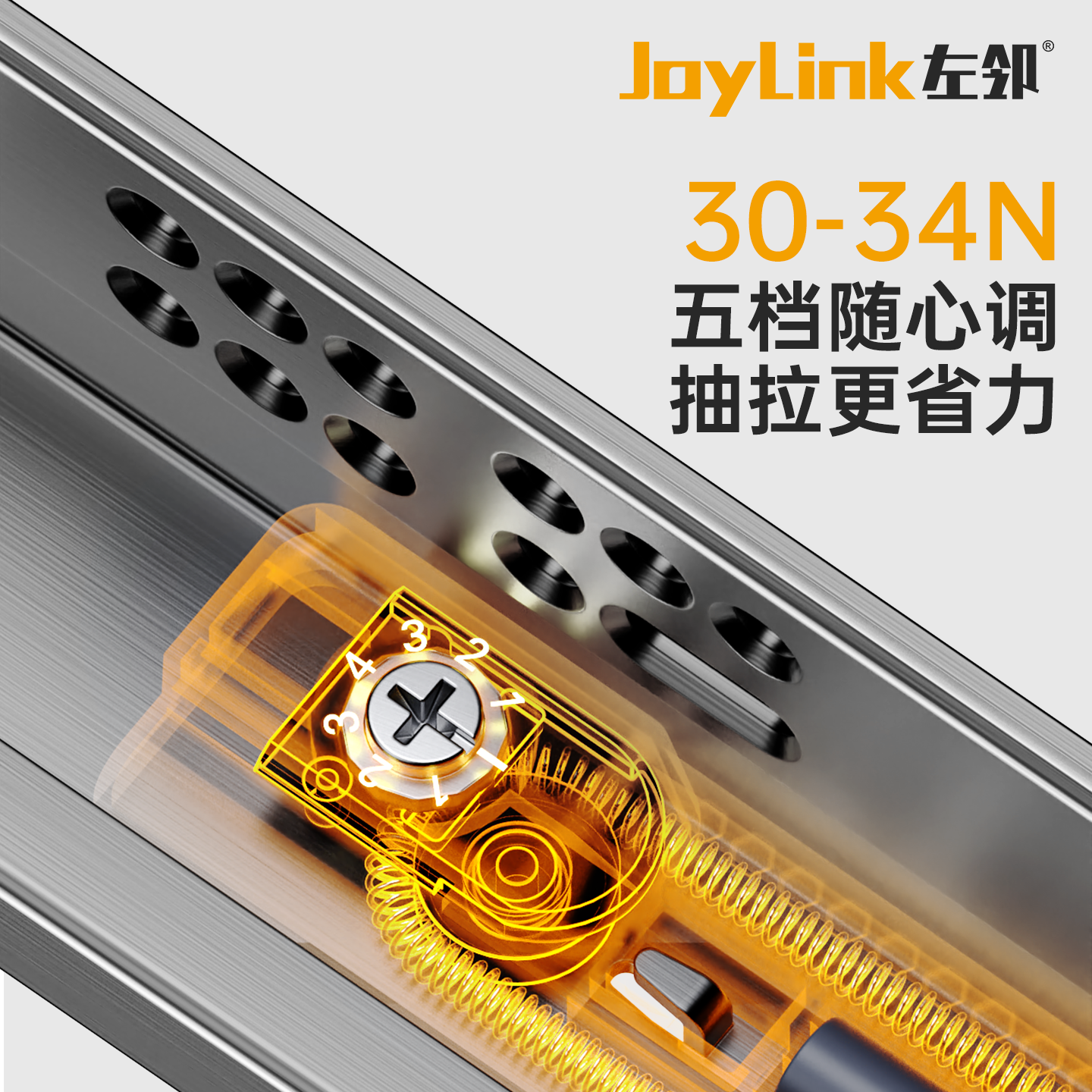 左邻5D全拉出隐藏轨三节阻尼反弹缓冲静音抽屉可调节托底导轨