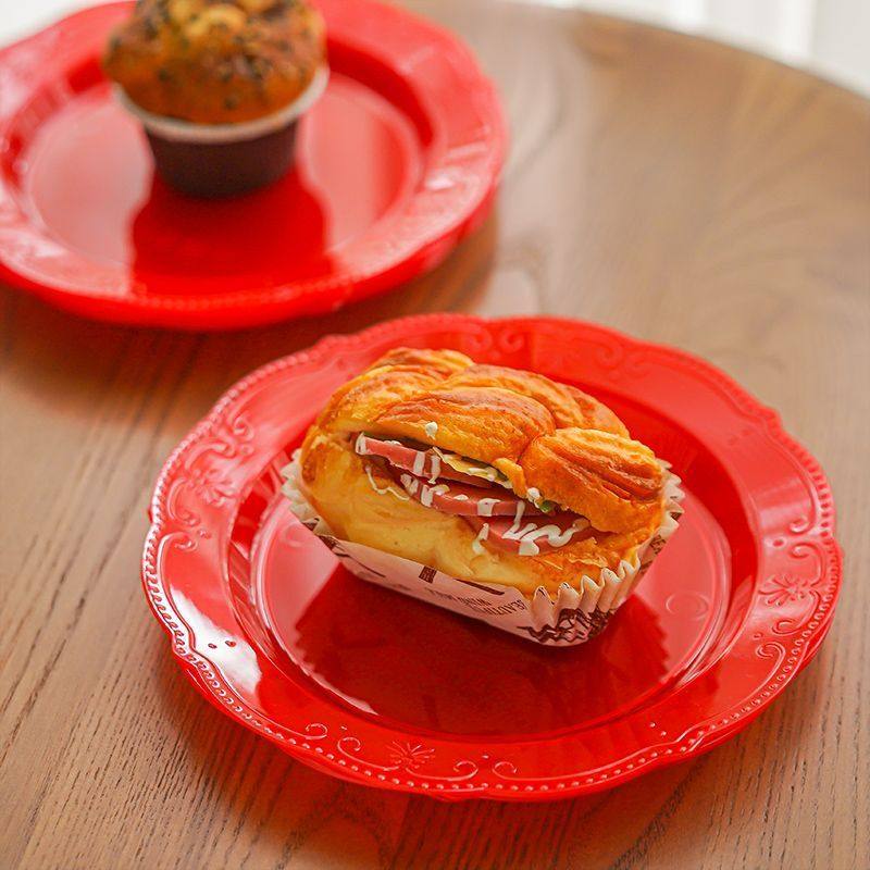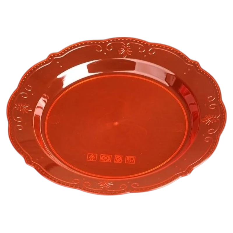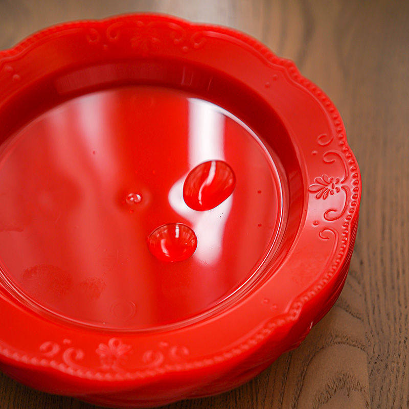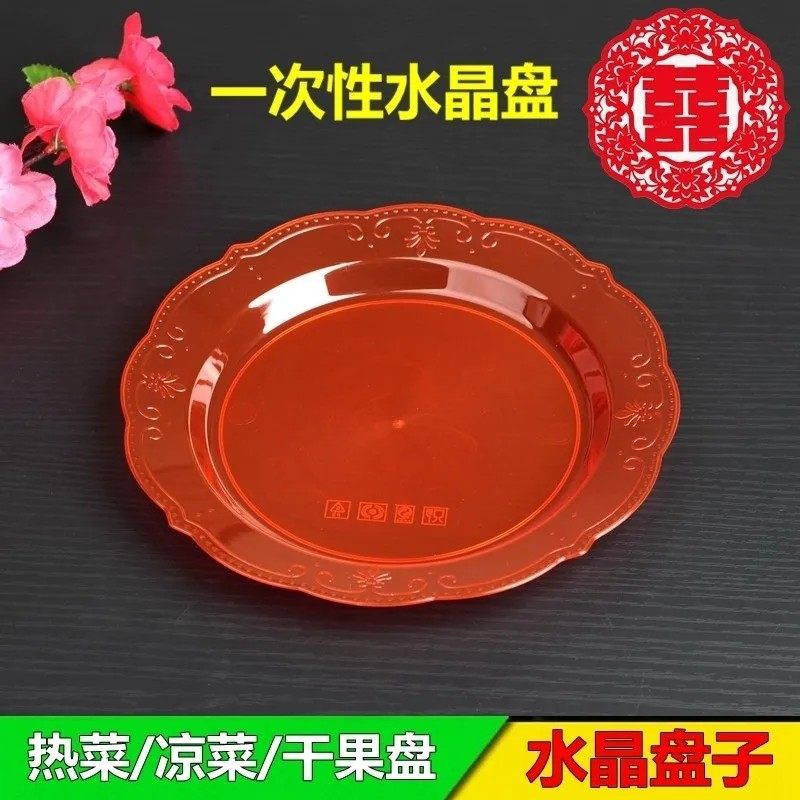 一次性盘子碟子加厚凉菜热菜盘水晶圆盘红色塑料喜庆结婚宴席盘子