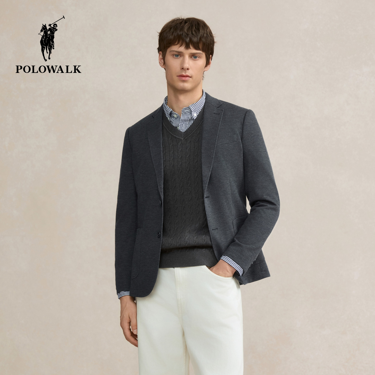 POLOWALK男装西服2025秋季新品商务绅士经典平驳领西装外套男式