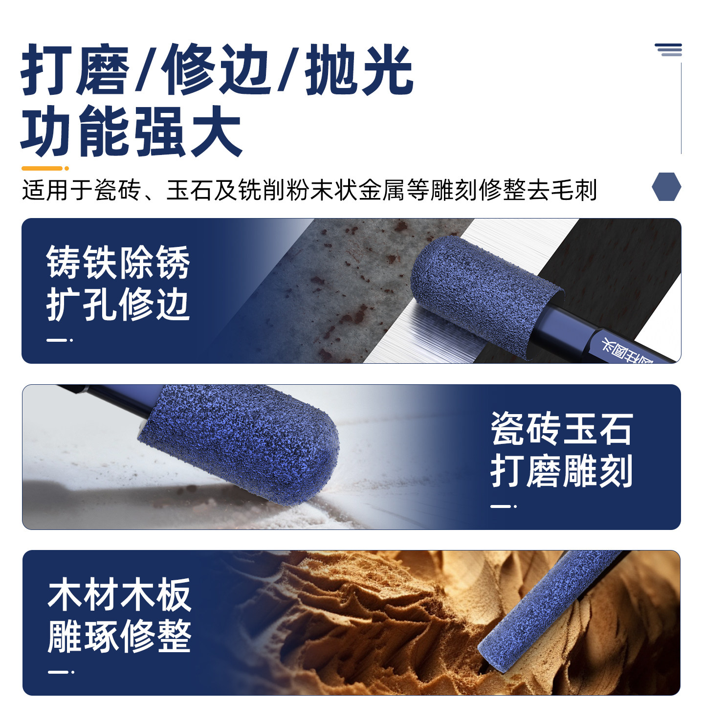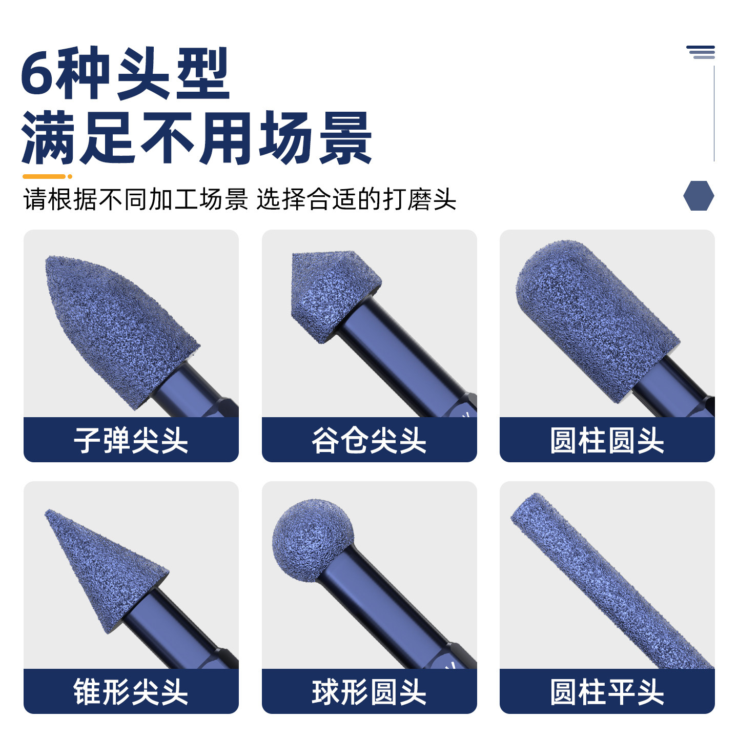 迪跃六角柄金刚石磨头铸铁瓷砖玉石手电钻打磨钻头内孔抛光旋转锉