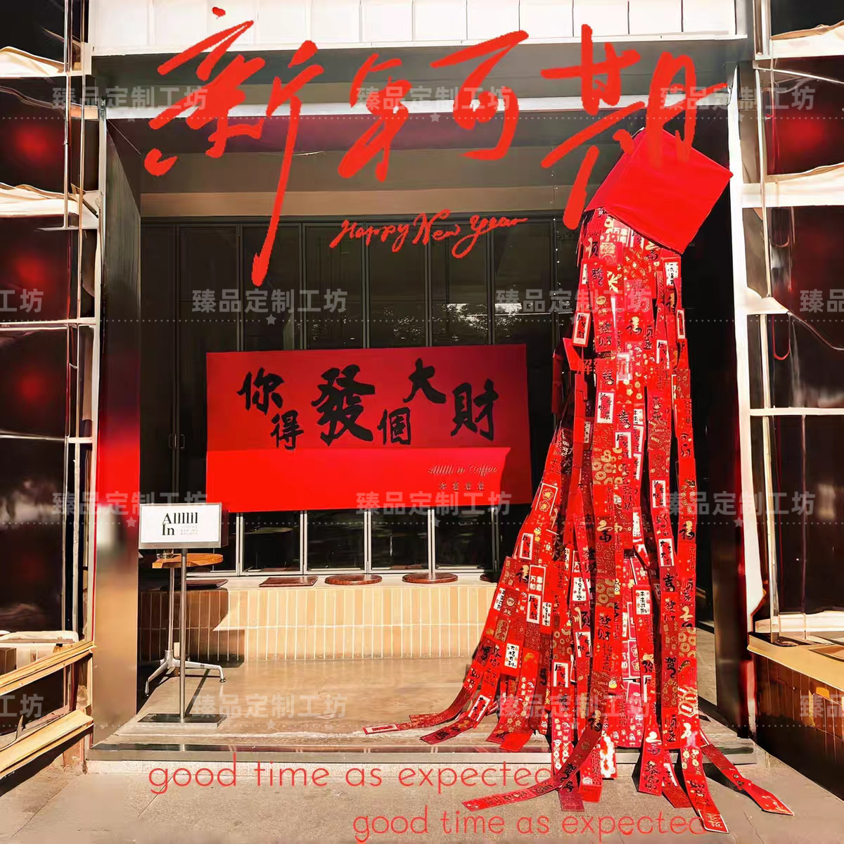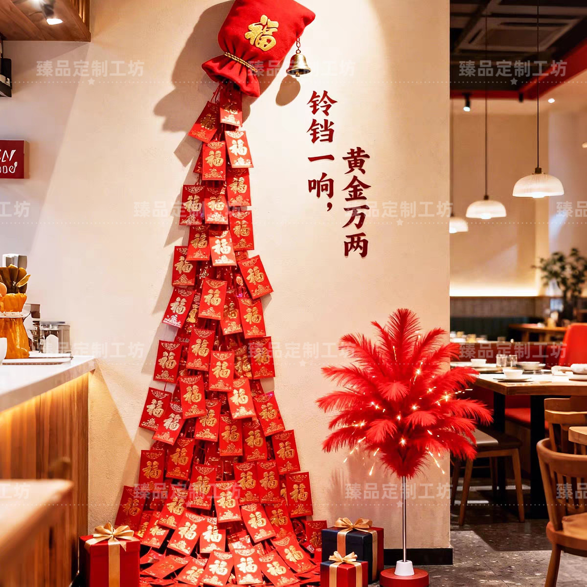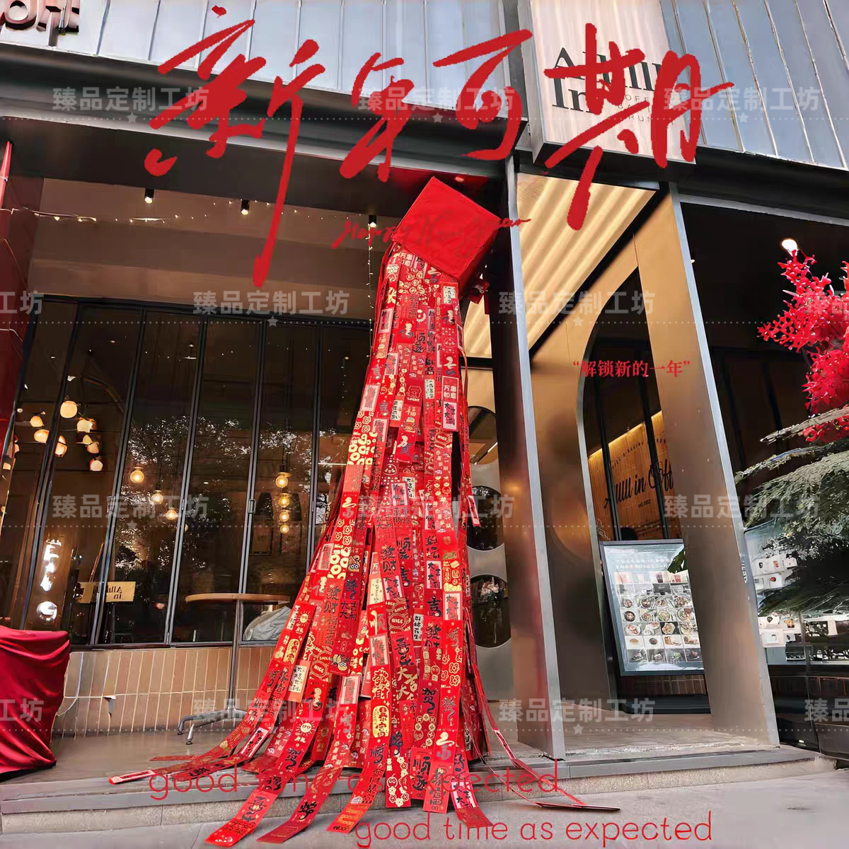 2026新年春节红包福袋瀑布装饰橱窗置景打卡点美陈布置道具创意