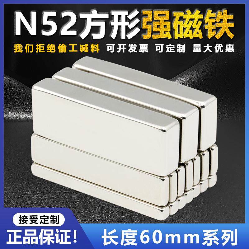 N52长度60mm系列超强磁方形磁铁吸铁石钕铁硼磁条石长方形强磁铁