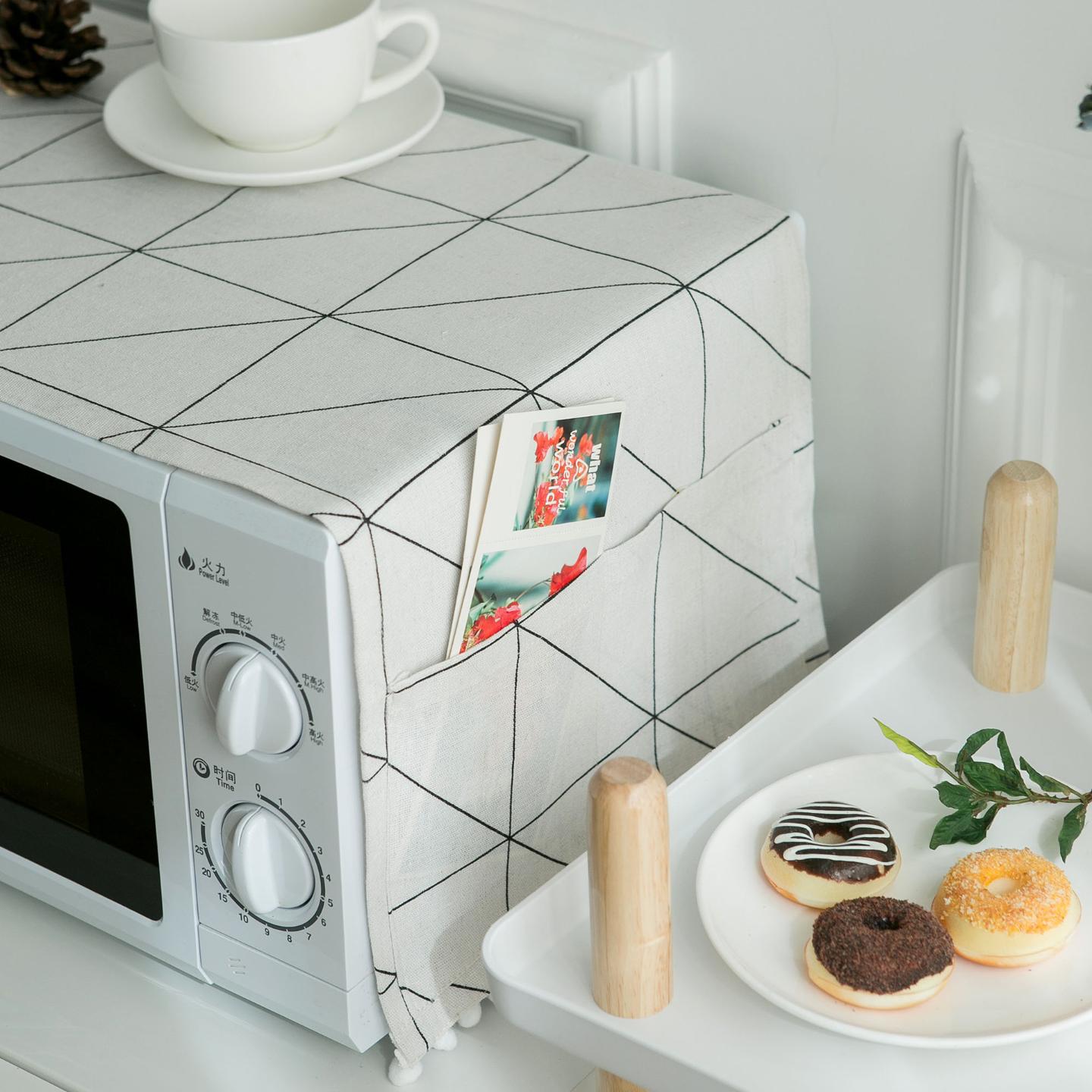 北欧黑白多用盖巾布滚筒洗衣机床头柜盖布单开门冰箱罩布艺防尘罩