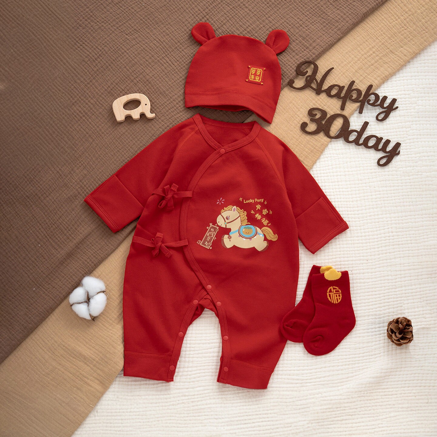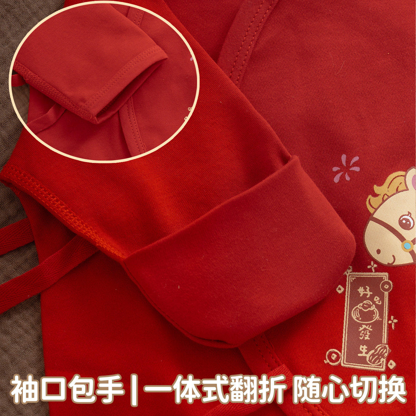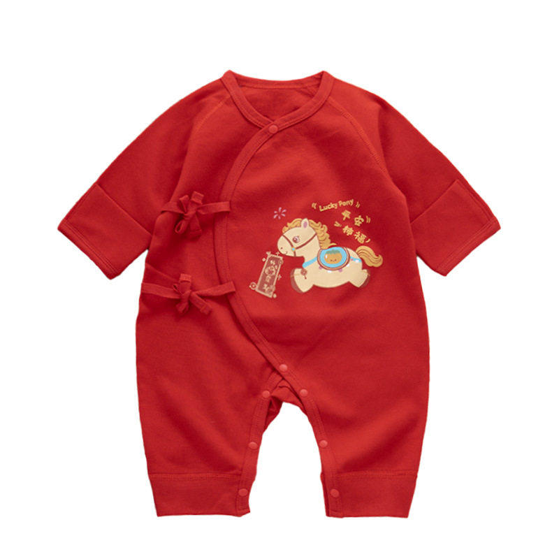 马宝宝连体衣婴儿过年和尚服纯棉无骨套装生肖中国风长袖