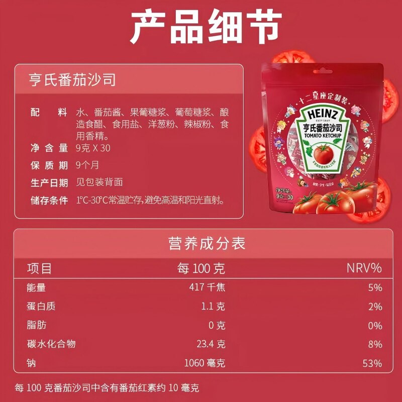 亨氏番茄酱番茄沙司9g*30包独立便携小包