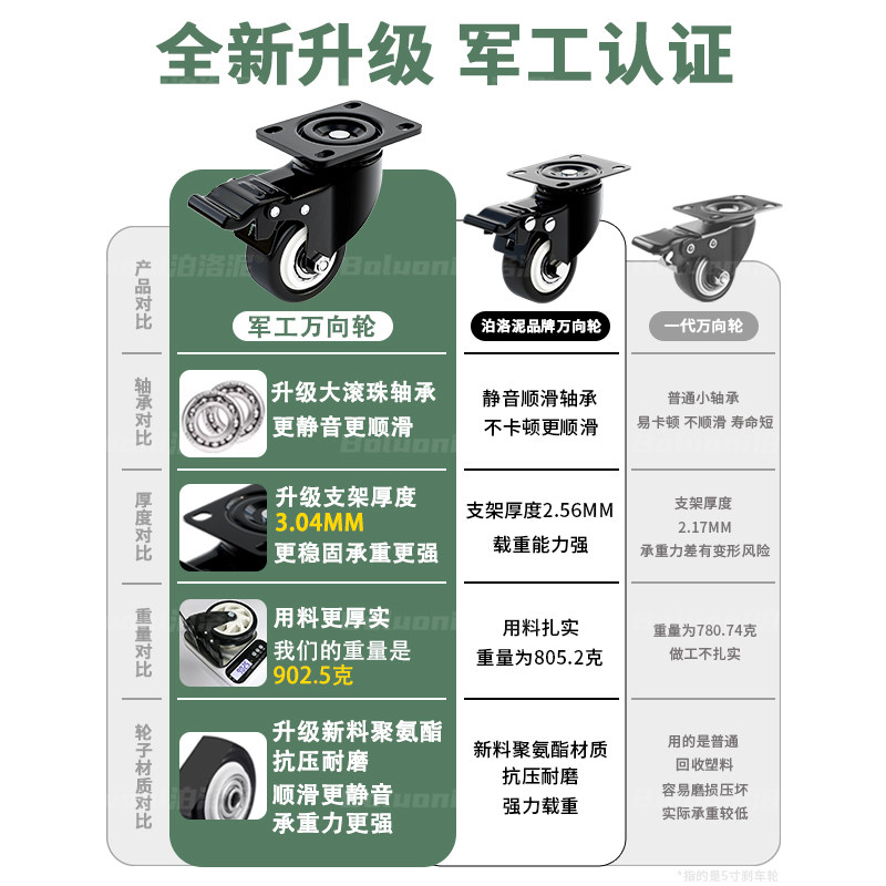 承重万向轮轮子大全超静音滑轮移动底座带刹车小推车定向脚轮滚轮