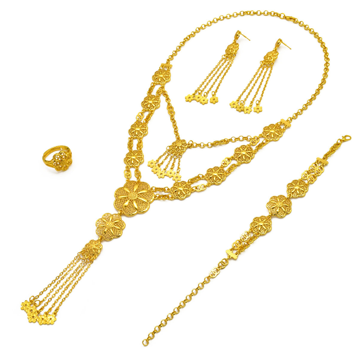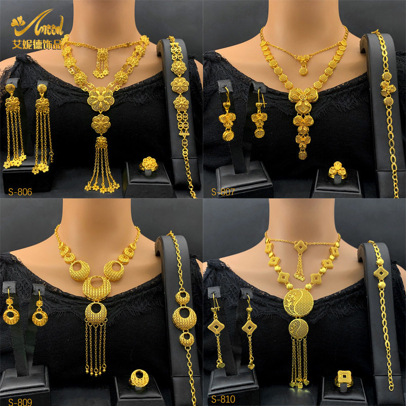 中东迪拜24k镀金首饰品越南新娘结婚庆手镯吊坠项链耳坠手链戒指