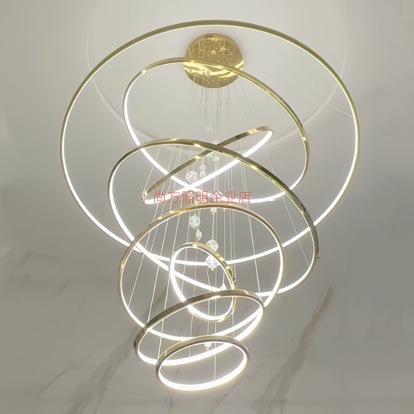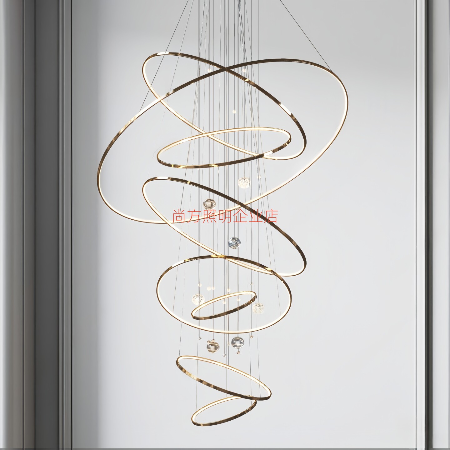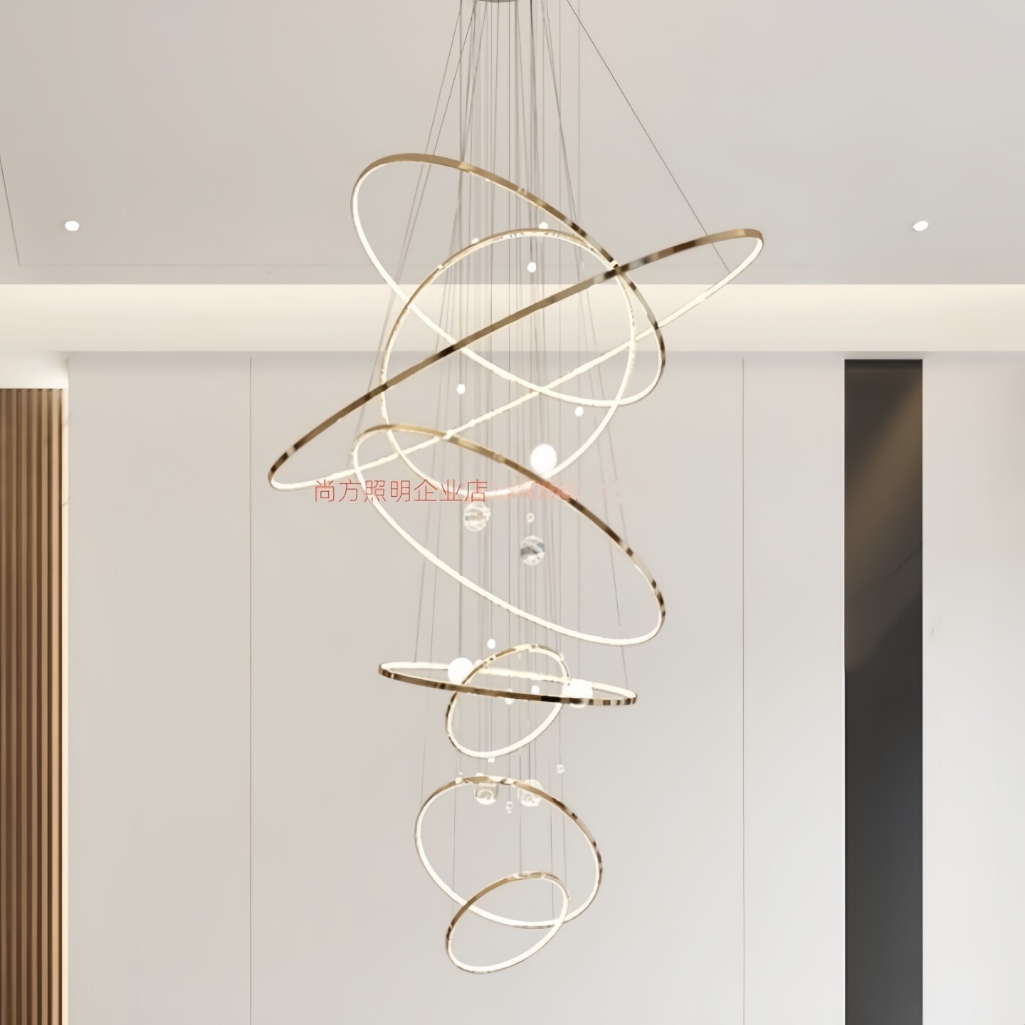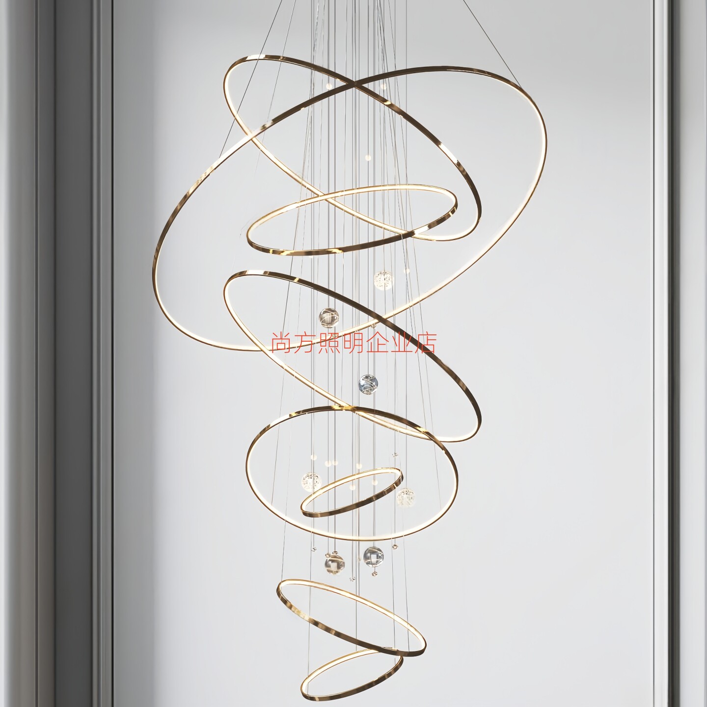 后现代轻奢客厅吊灯具设计师别墅loft公寓复式楼中空酒店大厅圆环