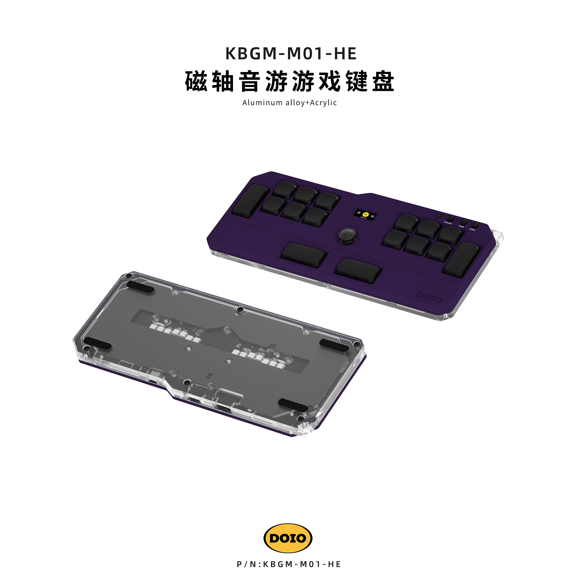 DOIO OSU/DJMAX/Muse Dash/EZ2ON 迷你便携音游手台矮磁轴铝合金自定义热插拔机械键盘 KBGM-M01-HE