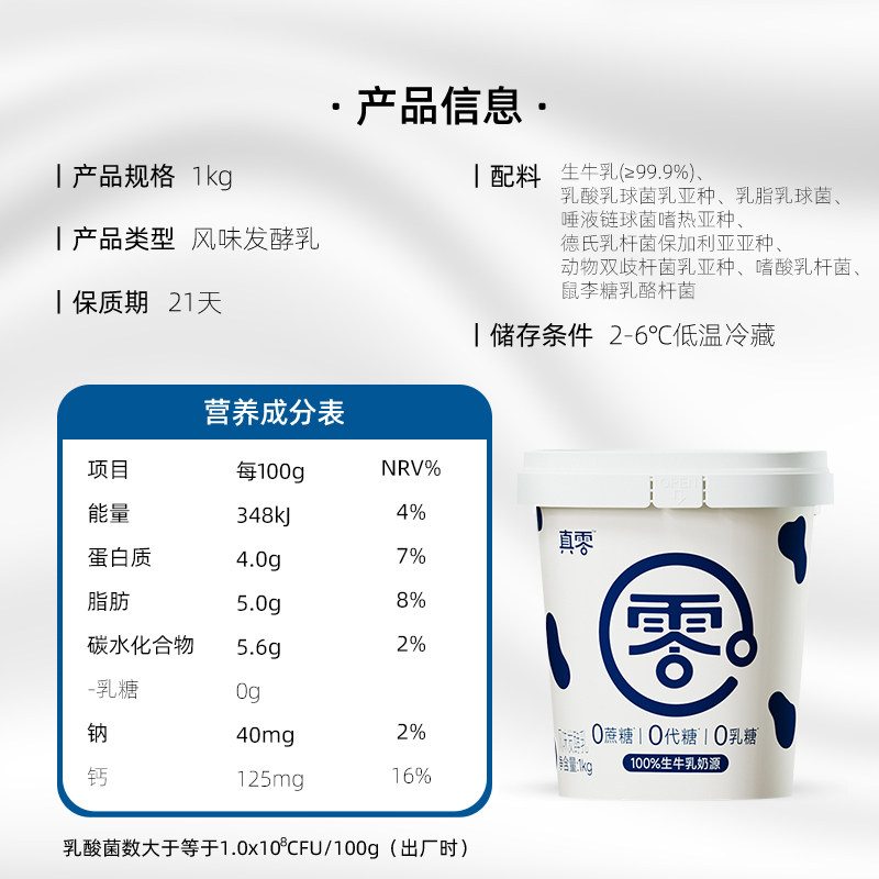 真零酸奶0乳糖0代糖酸奶低温酸奶1KG桶装发酵原味酸奶代餐奶
