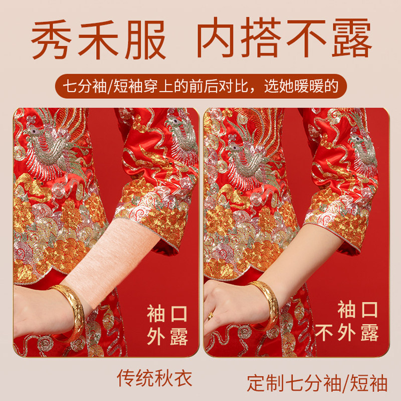 秀禾服内搭打底红色五分袖龙凤褂保暖内衣套装秋衣秋裤结婚新娘女