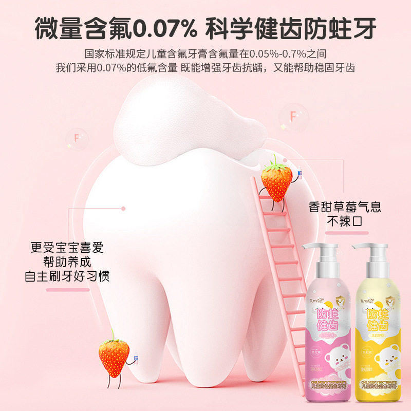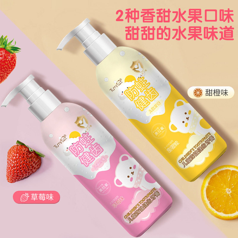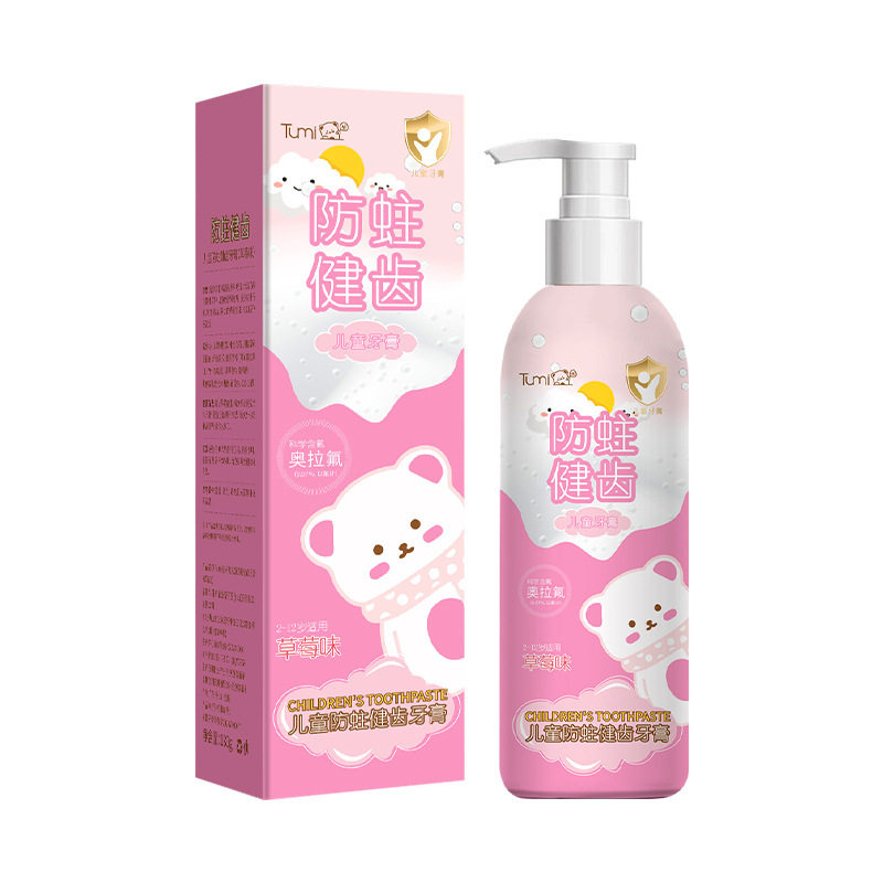 3-12岁孩童按压式益生菌图米熊含氟儿童牙膏健齿防蛀牙正品批发