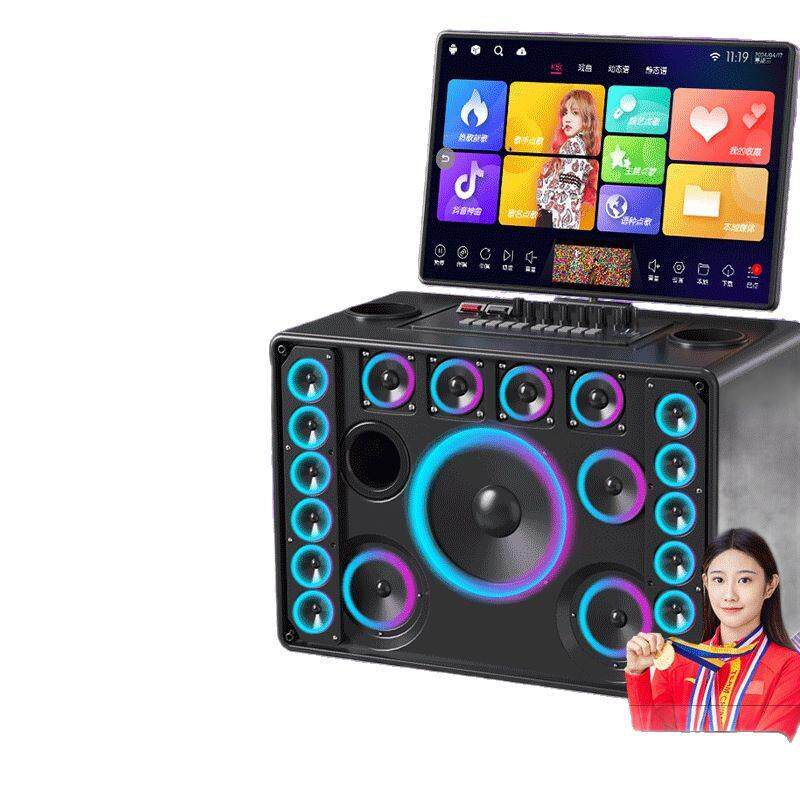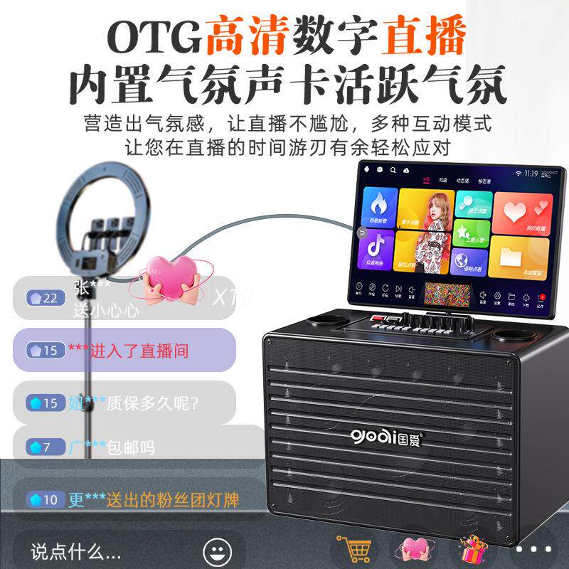 国爱户外家用KTV广场音响显示屏大功率卡拉ok一体点歌机移动音箱