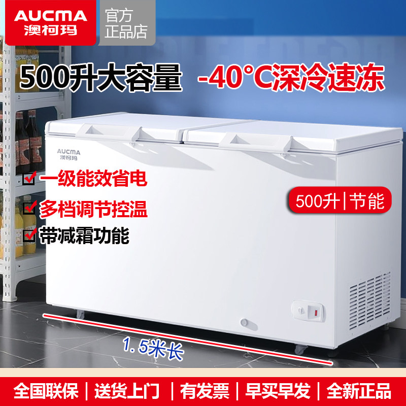 澳柯玛全冷冻冷藏家商用冷柜减霜401/500升单温卧式一级省电冰柜