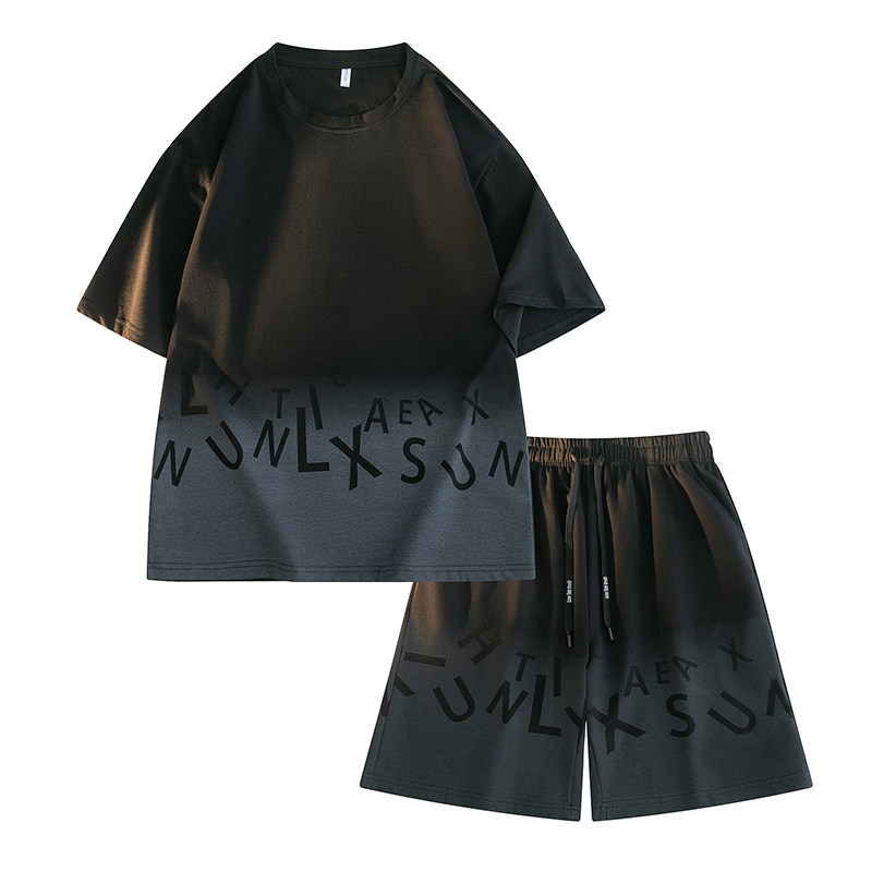 大码休闲运动套装男装夏季潮牌短裤短袖新款宽松男士加肥加大胖子