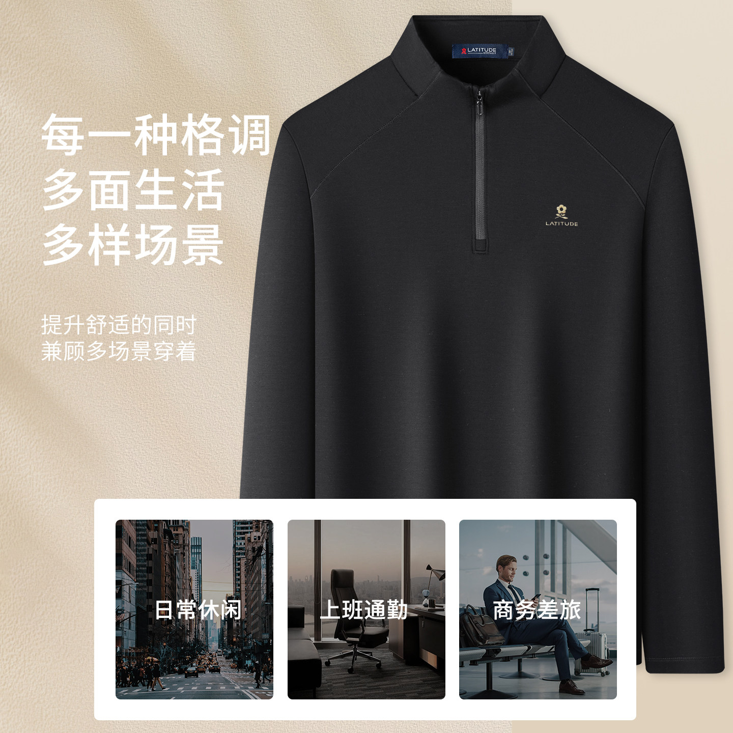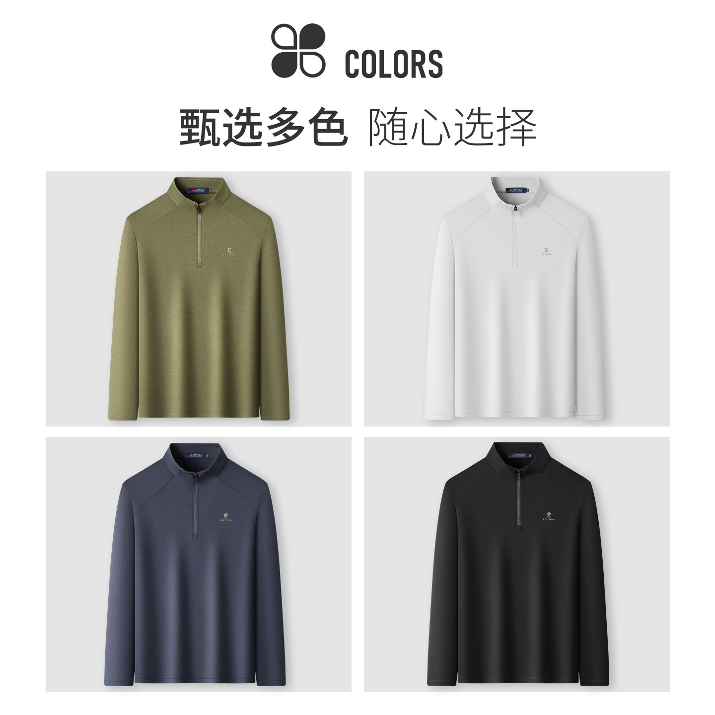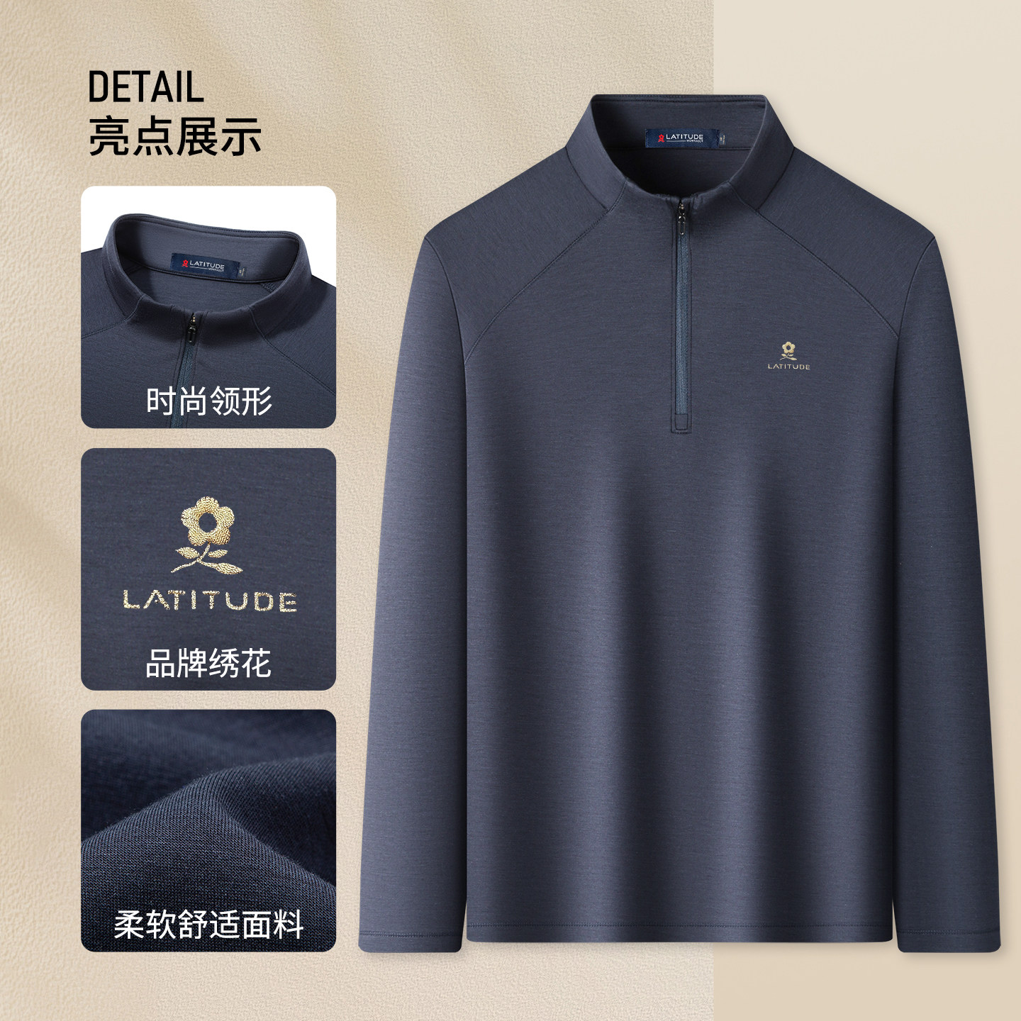 [含山羊绒]梦特娇春季男士卫衣休闲运动长袖t恤半高拉链领上衣男Z