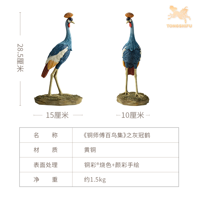 铜师傅 铜摆件 《铜师傅百鸟集》之灰冠鹤 家居饰品 桌面摆件
