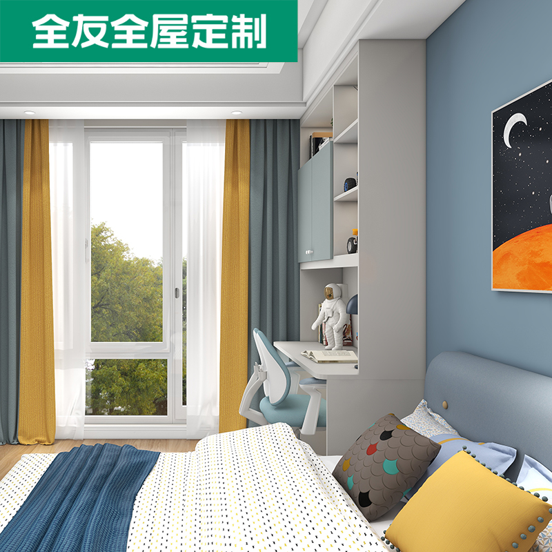 全友家居全屋定制书桌飘窗柜子学生可升降青少年书椅蓝色