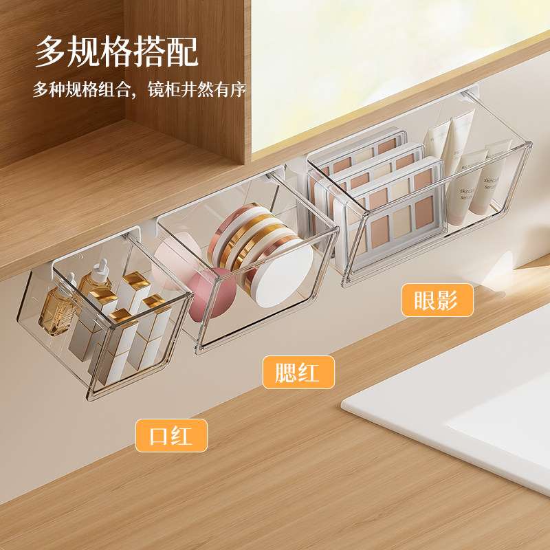 镜柜收纳盒下抽屉式浴室卫生间化妆品整理盒卸妆棉口红透明置物架