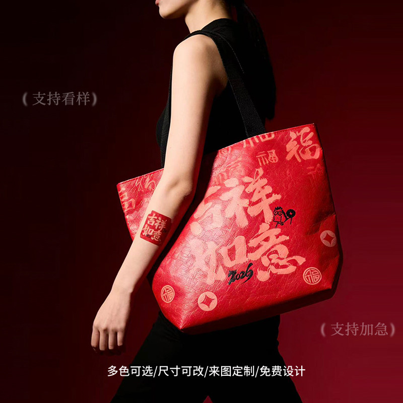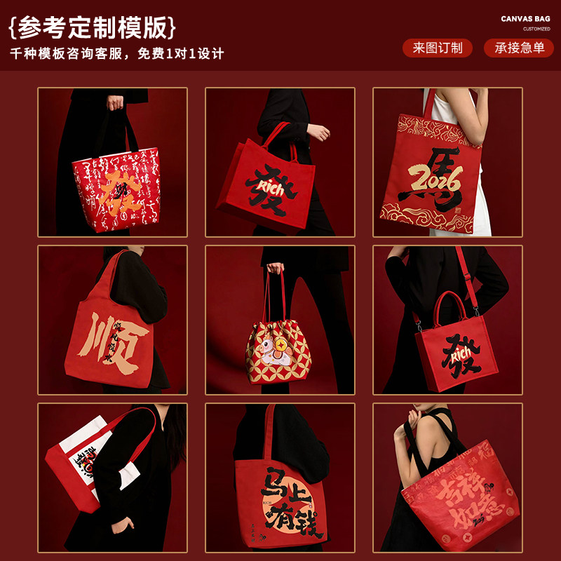 2026马年帆布袋定制文创新年红色杜邦纸帆布包订制伴手礼来图定制