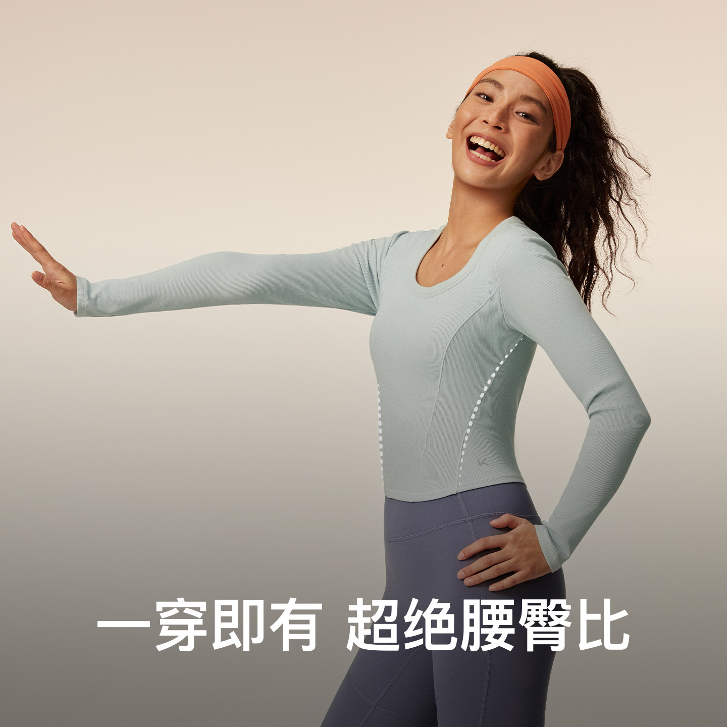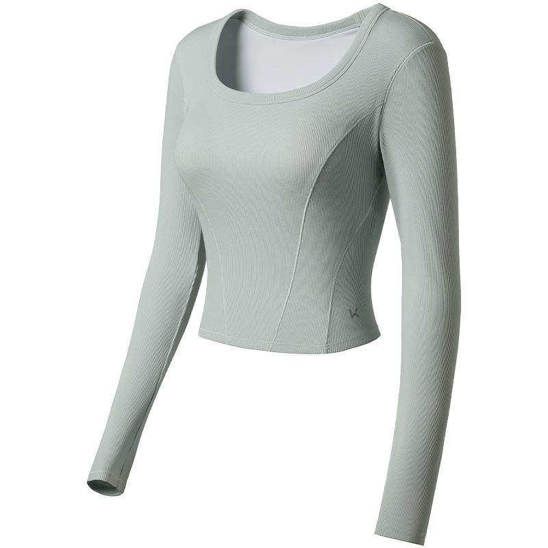 【新品】Keep瑜伽T恤女秋冬健身普拉提方领带胸垫裸感长袖T恤8622