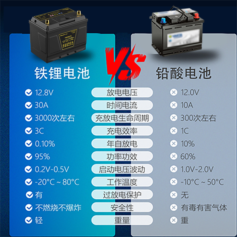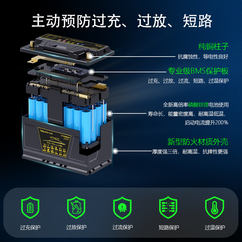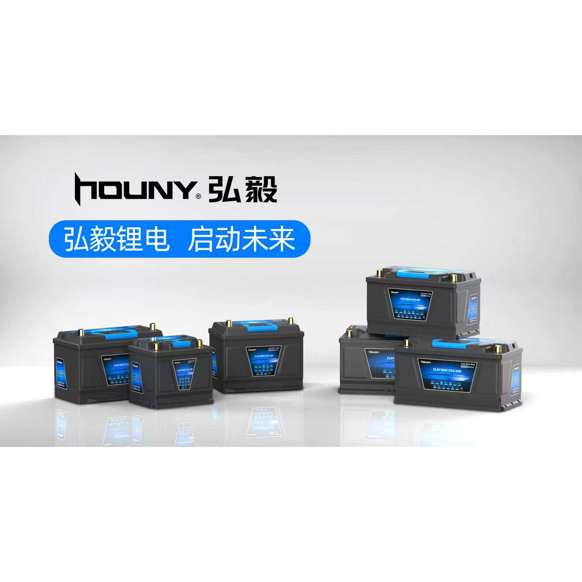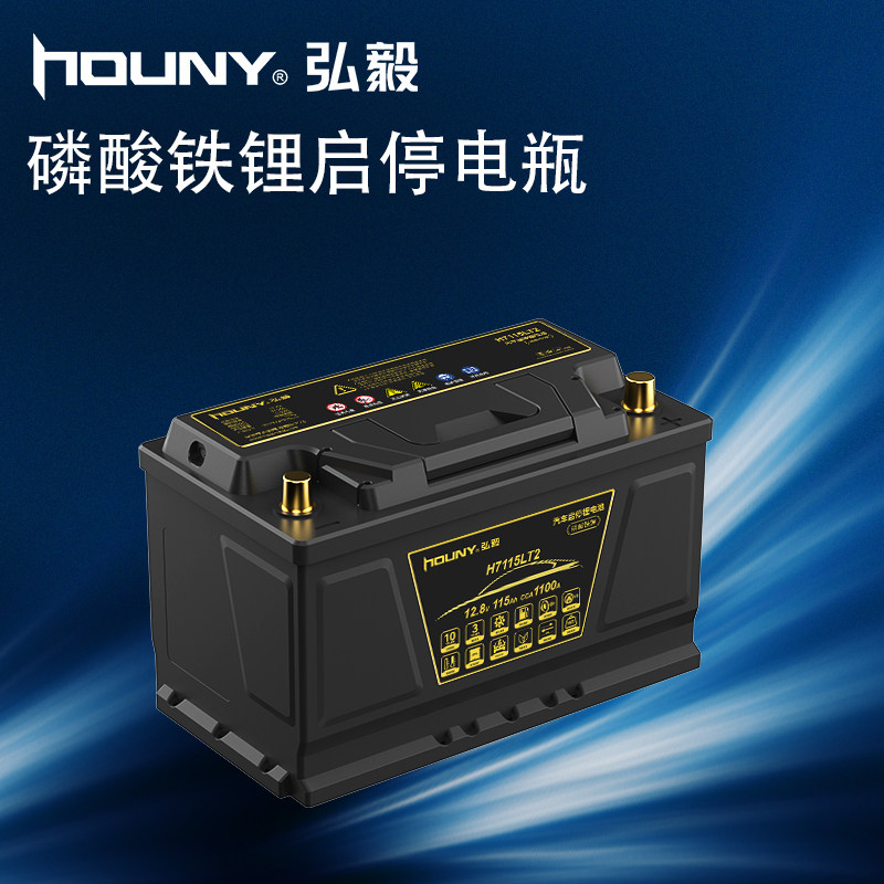 HOUNY弘毅磷酸铁锂汽车启停电池大容量AGM免维护12v启动电瓶